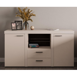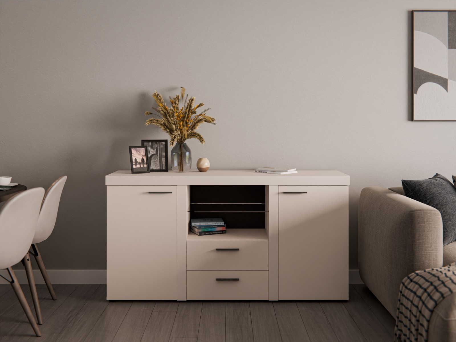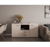Komoda Rizo je nejen skvělým doplňkem k bytové stěně Rizo. Stejně výborně poslouží jako samostatný kus nábytku. Komoda má univerzální využití a nabízí dostatek úložného prostoru. Komoda je vyrobena z odolného a stálobarevného lamina. Komoda je dodávaná v demontu. Součástí balení je schematický montážní návod, včetně všech potřebných spojovacích prvků. Vyobrazené doplňky, LED osvětlení a dekorace nejsou v ceně.