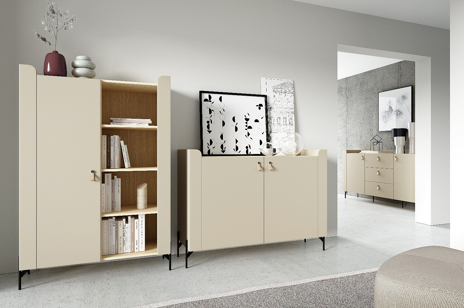 Modulový systém SALERNO je dostupný ve dvou barevných variantách: Macadamia/Dub Mavelie a Porcini/Dub Mavelie. Tento systém umožňuje snadné kombinování a vytváření harmonického interiéru, ať už se jedná o dětský pokoj, obývací pokoj nebo jinou místnost ve vašem domě.