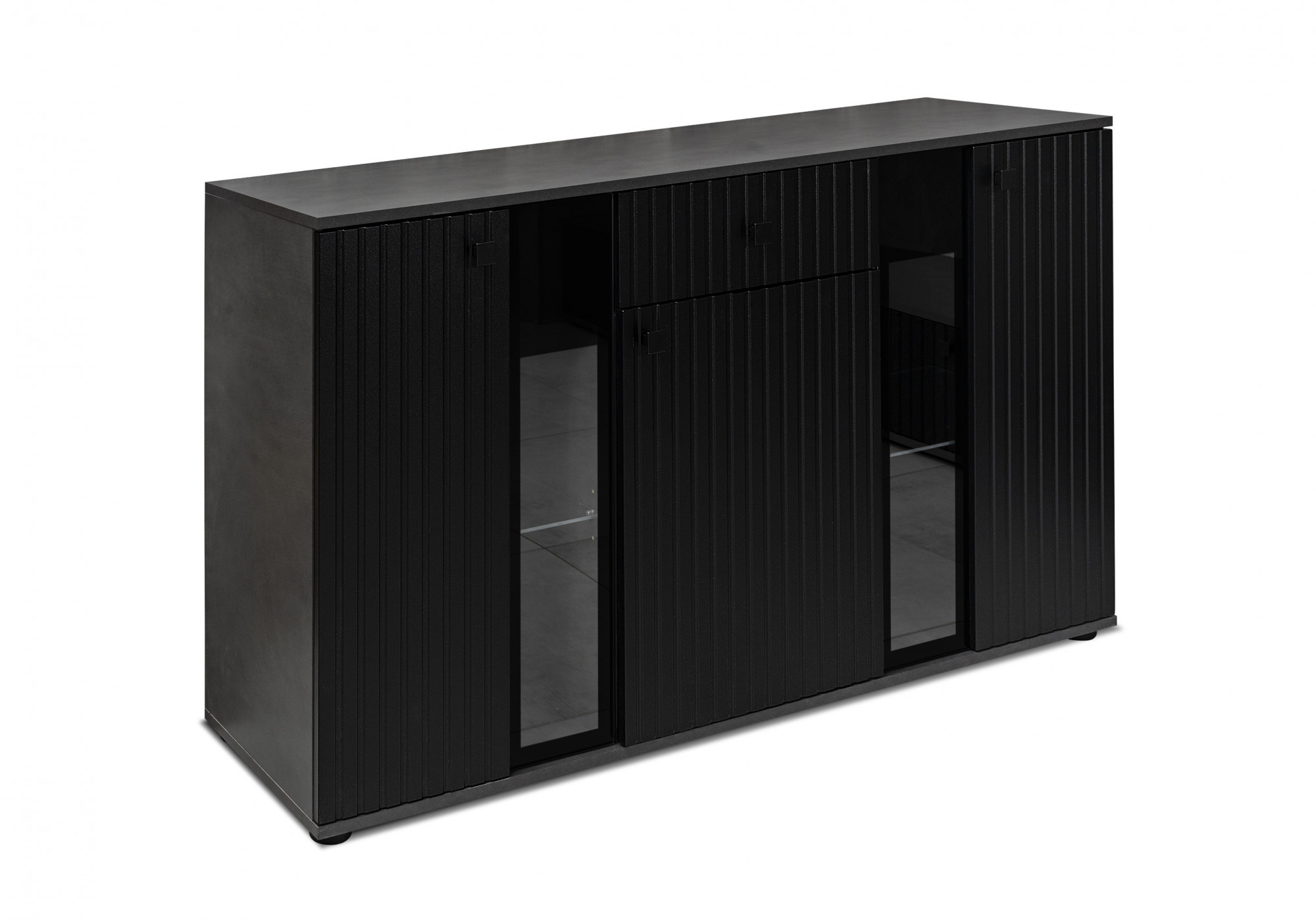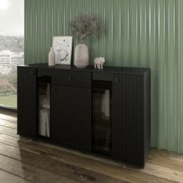 Komoda SALIA je moderní komoda s rýhovanými čely, uspořádanými vertikálně, imitujícími lamely. SALIA je vynikající volbou pro obývací pokoj, ložnici nebo předsíň. Nábytek má tři skříňky a zásuvku, což z něj činí ideální místo pro ukládání. Komoda SALIA se jistě hodí do většiny aranžmá a dodá místnosti výjimečný šarm.