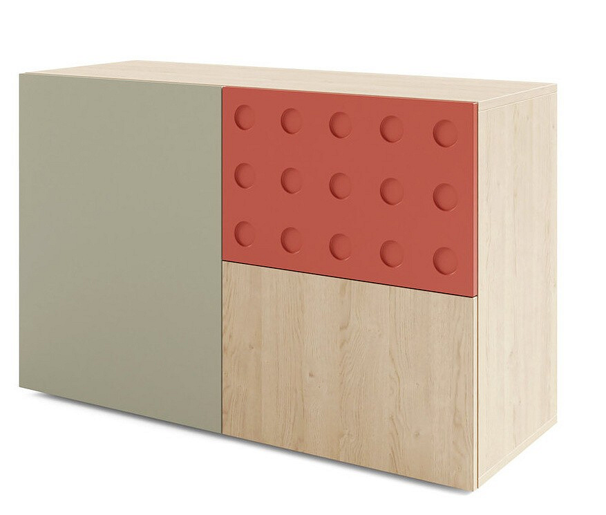 Systém SALSA je vyroben v barevném provedení - Dub piškotový/Eukalyptus/Salsa.