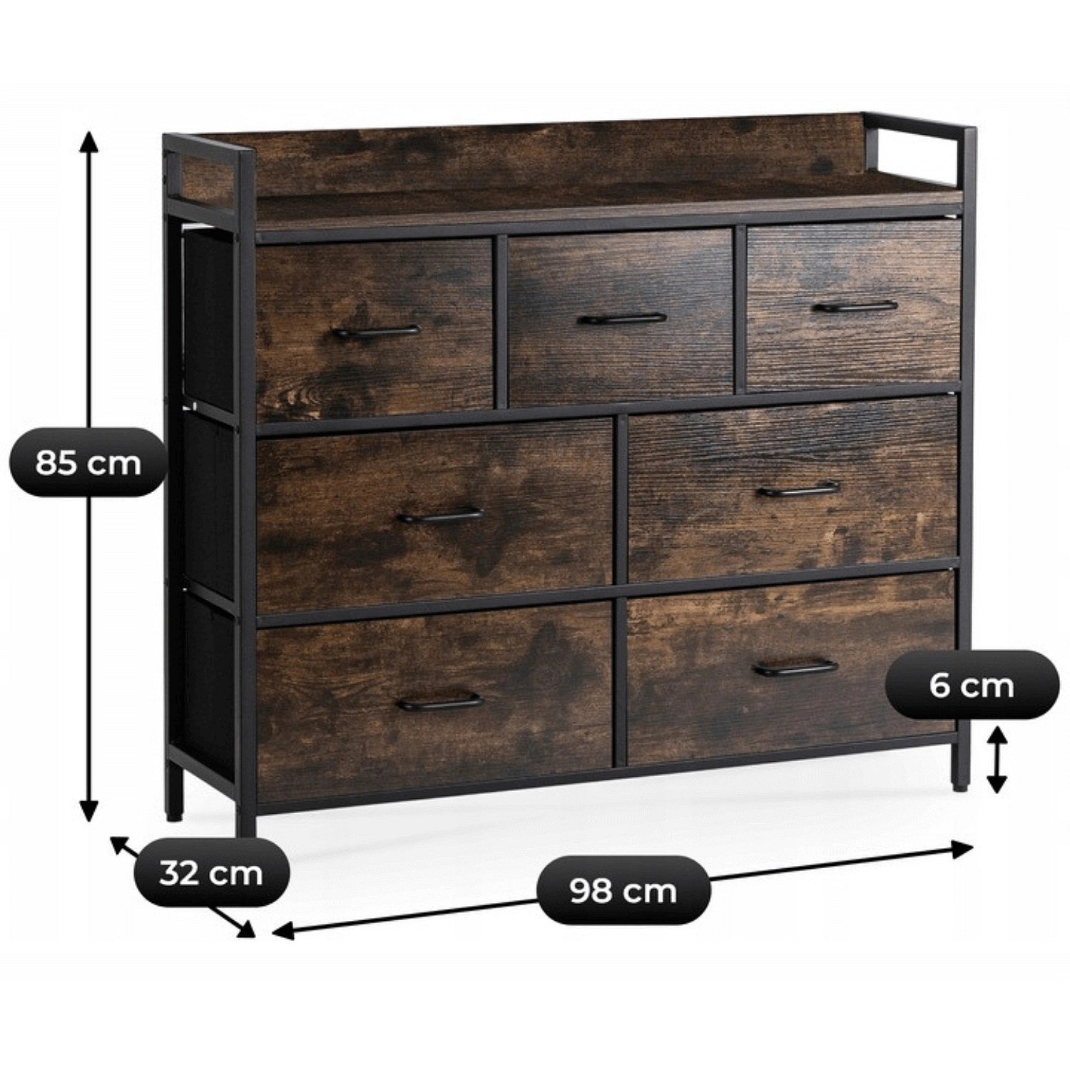 Komoda se zásuvkami HUDSON 98 cm Dub Rustikální/Černá
