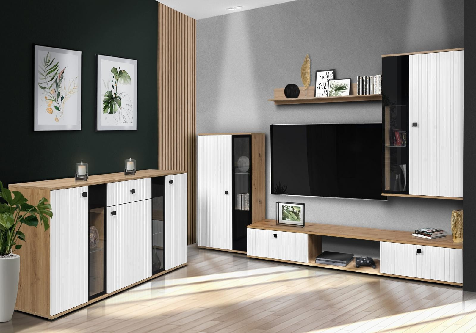 Komoda SILOS, Bílá/Dub artisan/Melamina