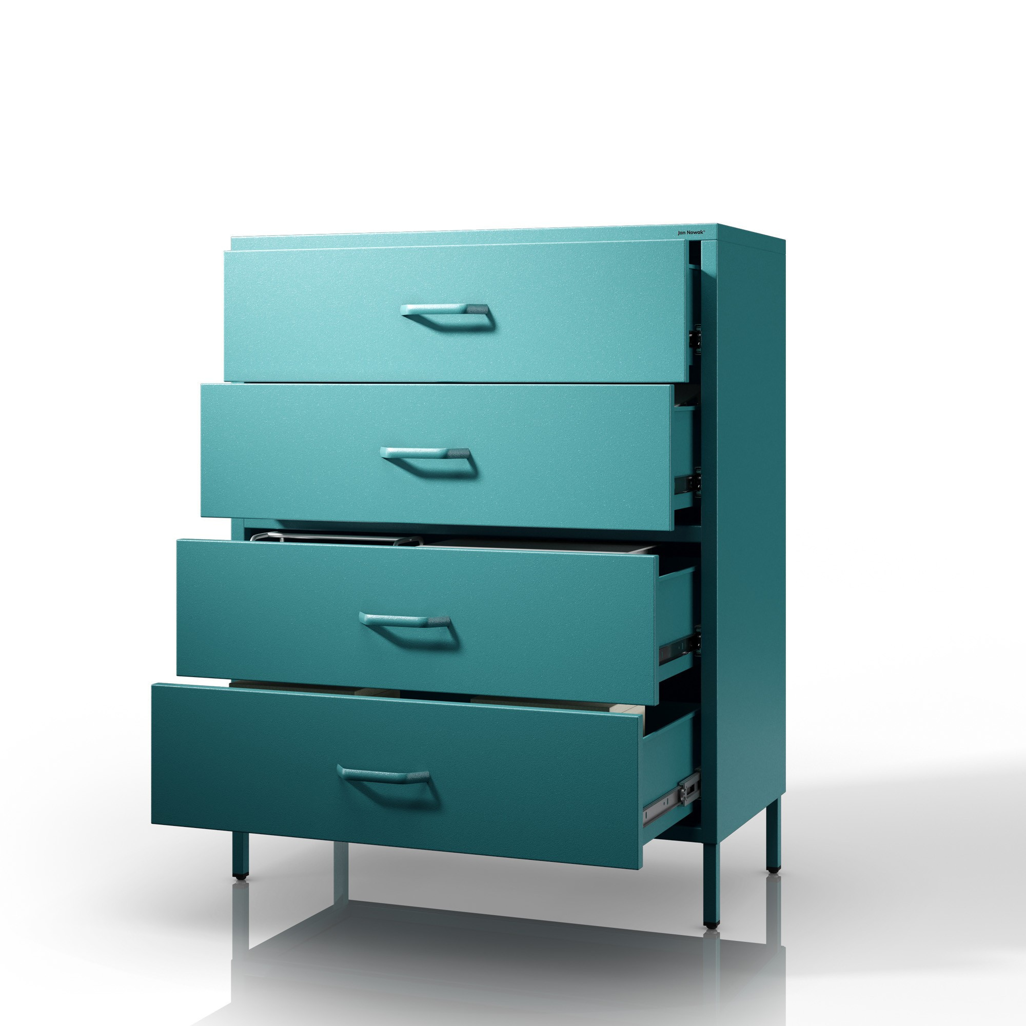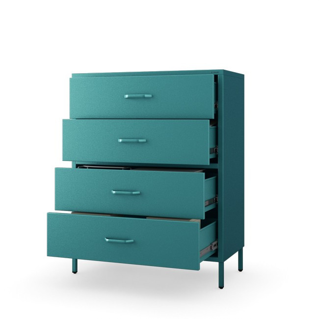 Komoda skříňka kovová mořská / tyrkysová Modern CARLA, 800 x 1015 x 400 mm