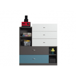 TABLO je moderní nábytek pro děti a mládež..Díky počtu prvků si můžete bez problémů tento nábytek přizpůsobit jakémukoliv interiéru. Nábytek je vyroben z dřevotřískové desky o tloušťce 16 mm a 22 mm. Hrany jsou pečlivě ukončeny dýhou ABS odolnou proti každodennímu používání. Nábytek je k dispozici v barvách zobrazených na fotografiích.