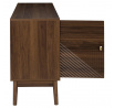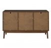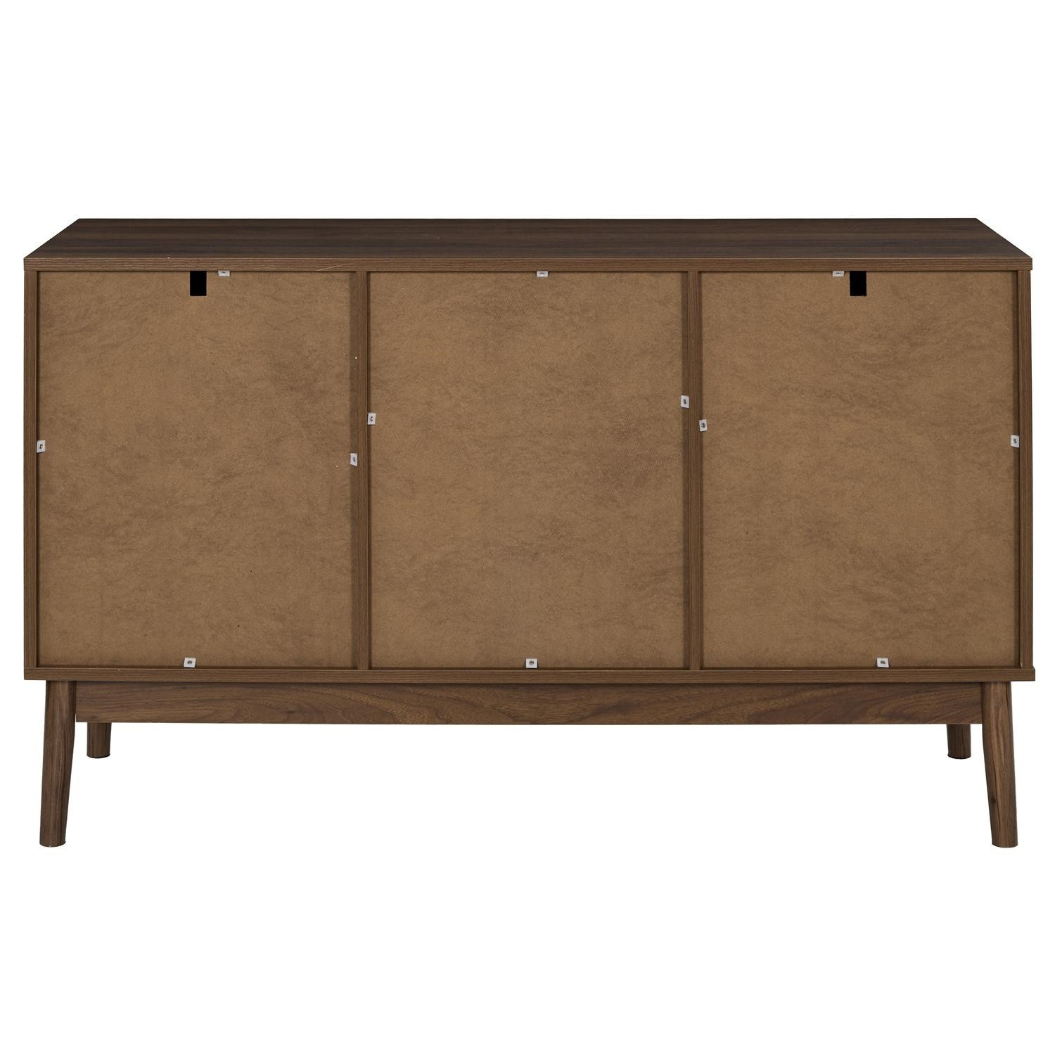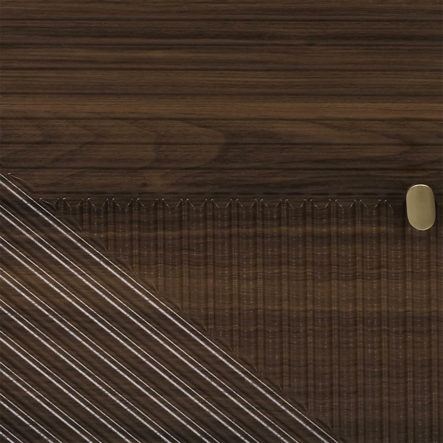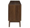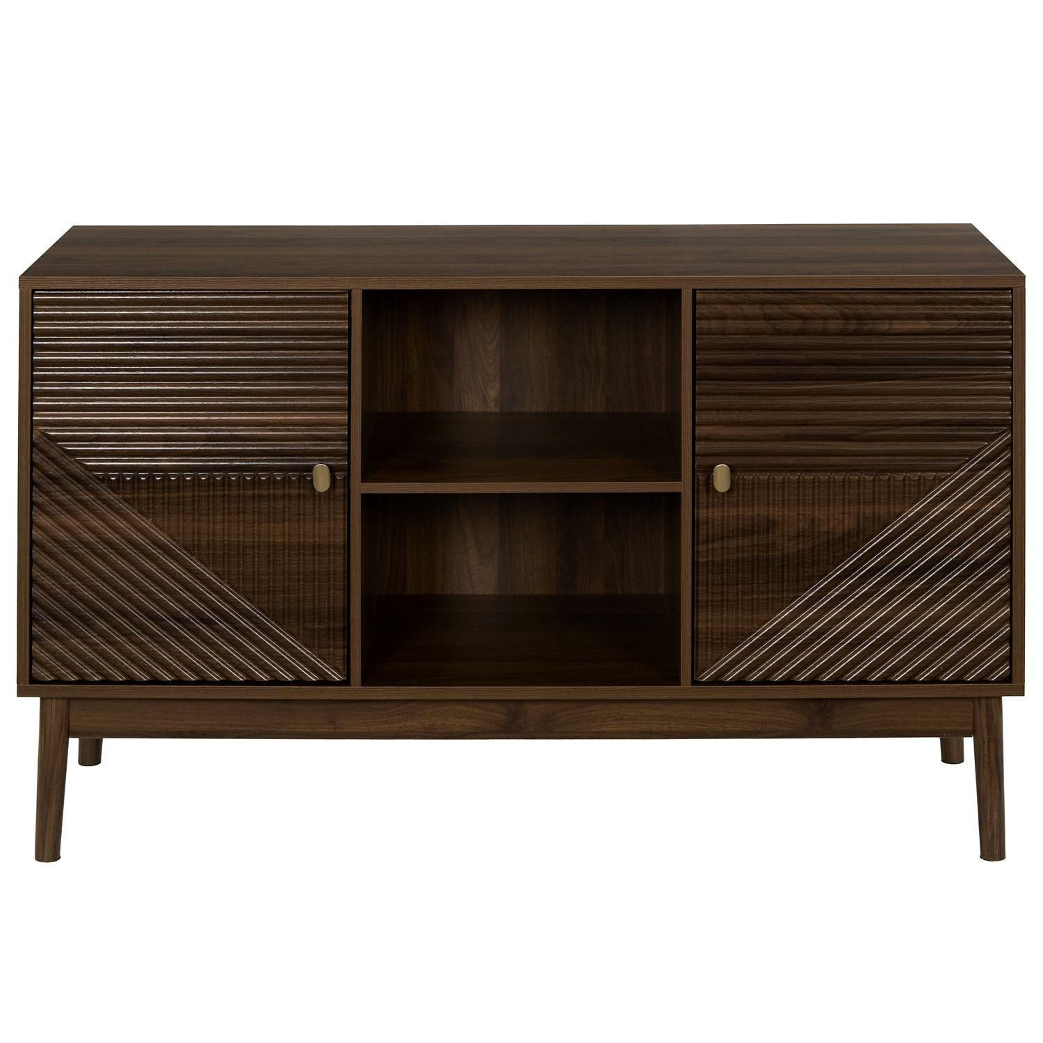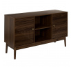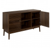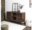 Komoda vyžaduje montáž Materiál: MDF deska s dýhou imitující ořech. Nohy borovicové dřevo, úchyty kov. Komoda vybavená 2 dvířky, za kterými se skrývají další police. Max. zatížení nábytku 40 kg.
