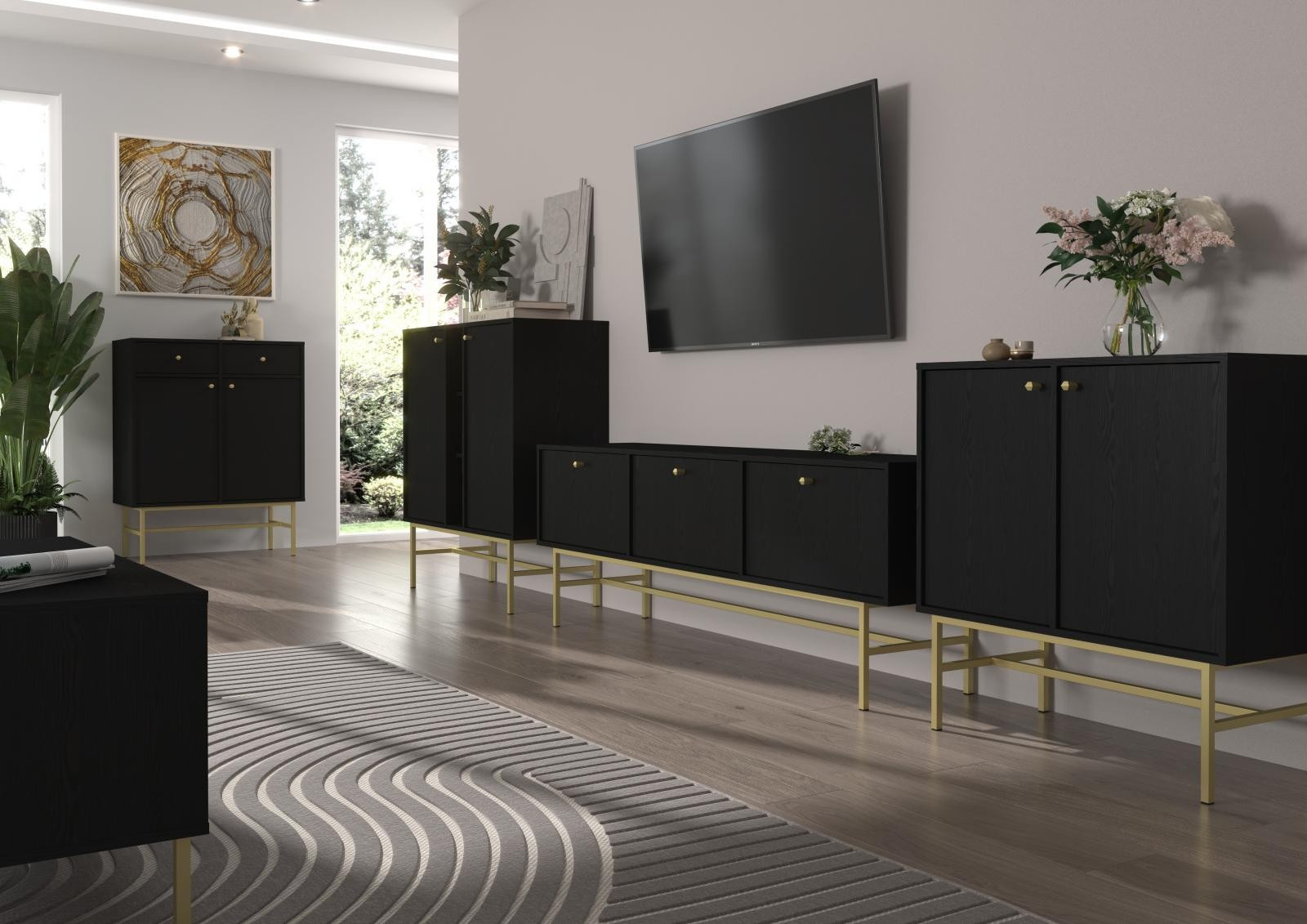 Série Tomila nabízí noční, TV i konferenční stolky, vitríny a komody v široké škále tvarů, barev a typů noh.