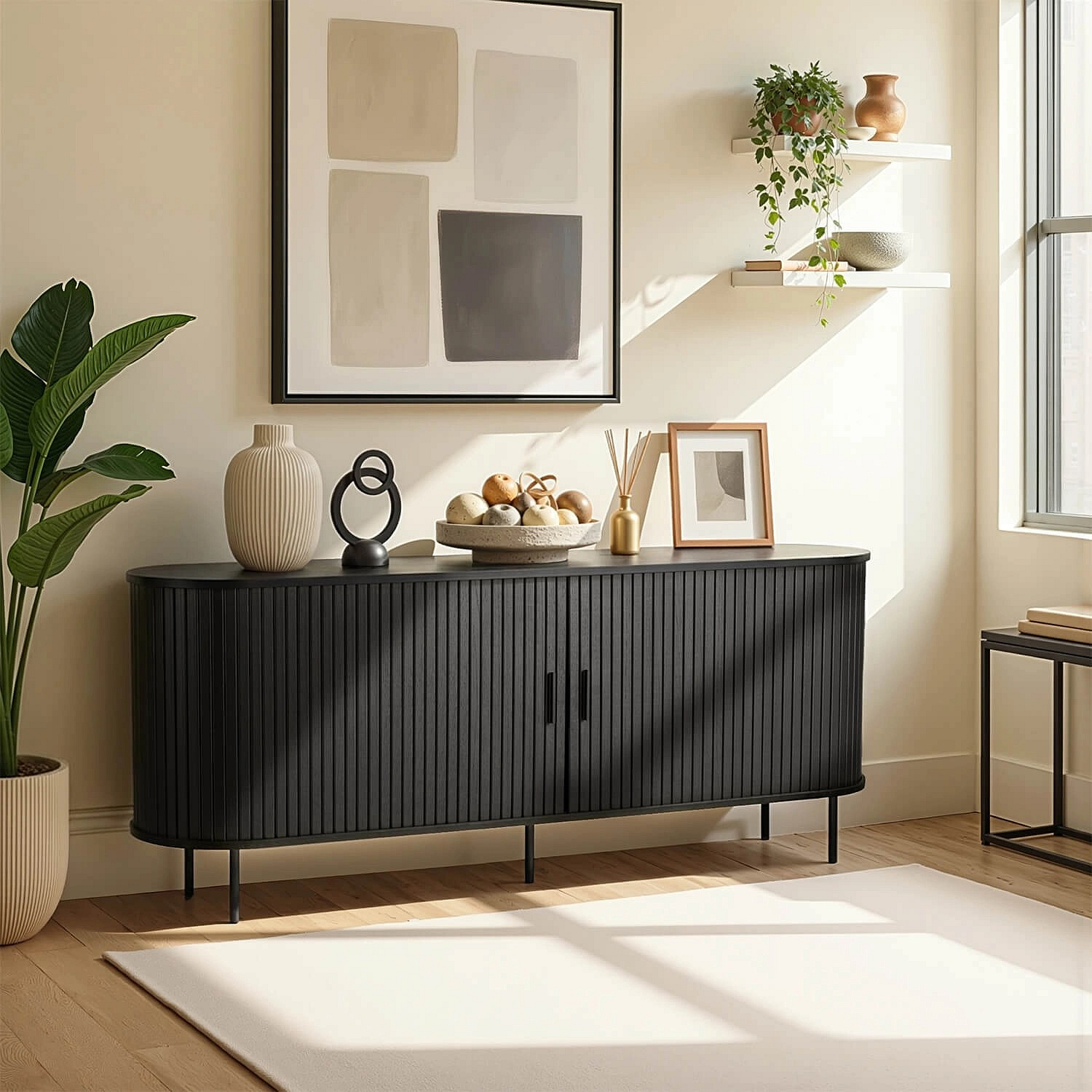 Komoda TRISH 180 cm Dvoudveřová Posuvná Černá
