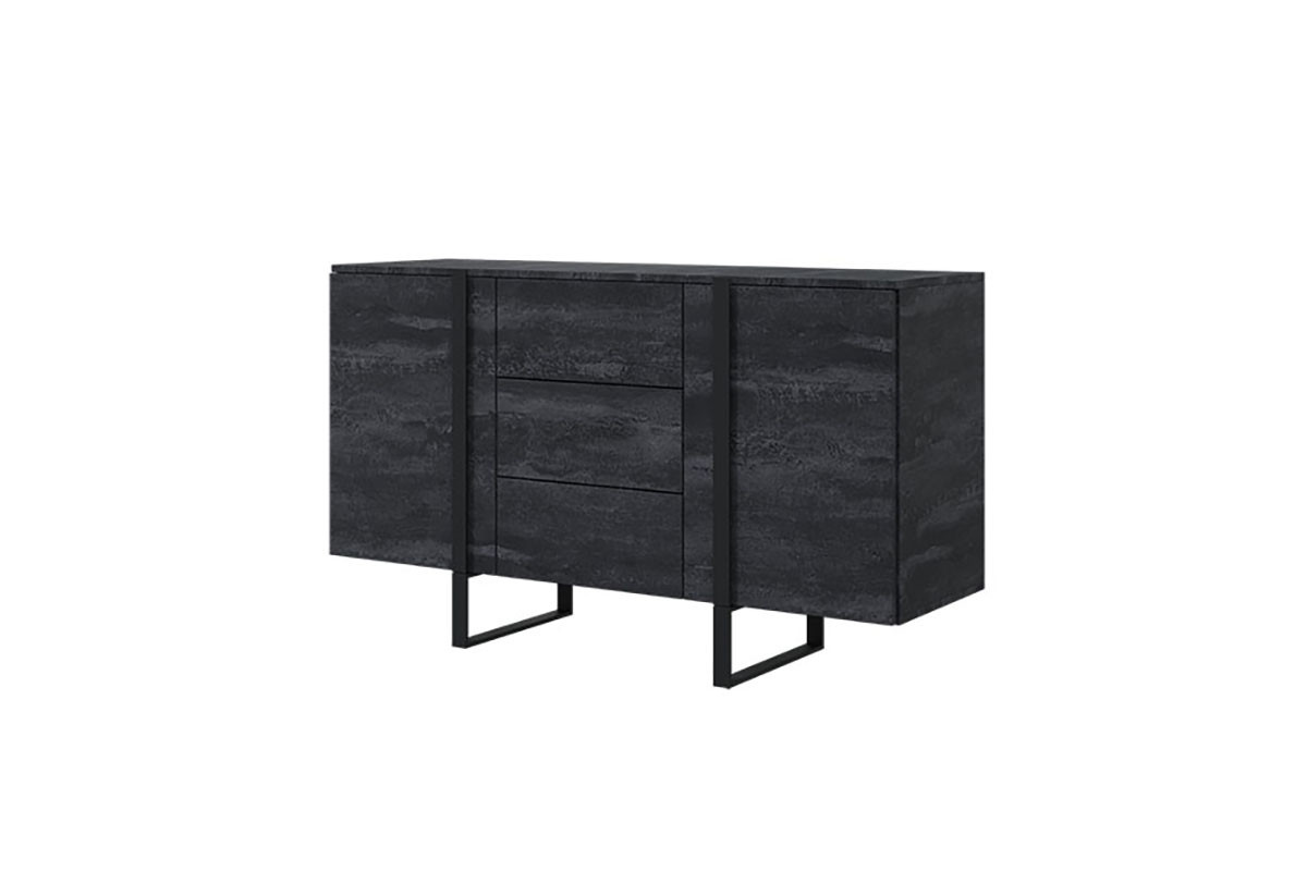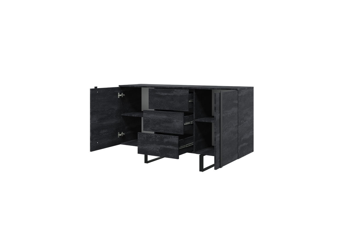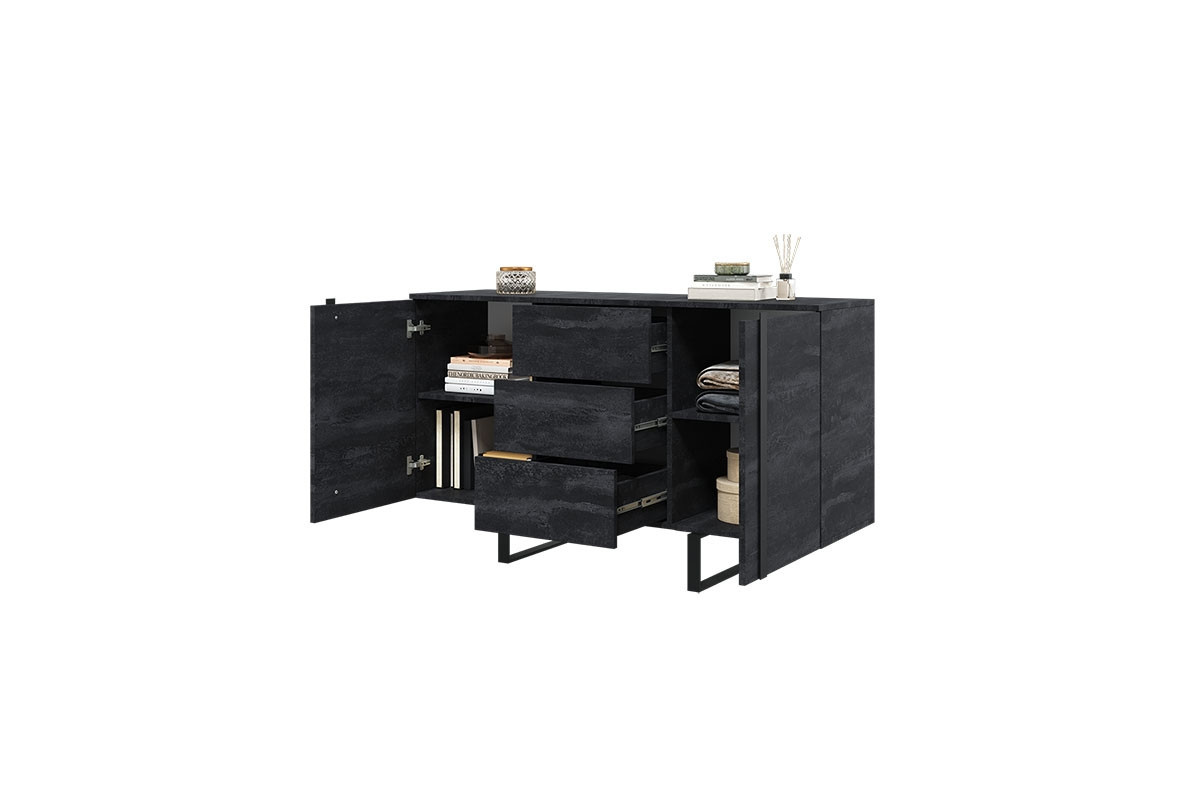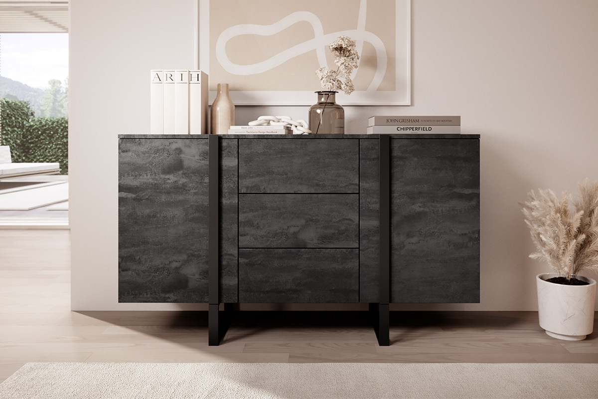 Komoda Verica 150 cm se třemi zásuvkami - černý beton / černé nohy