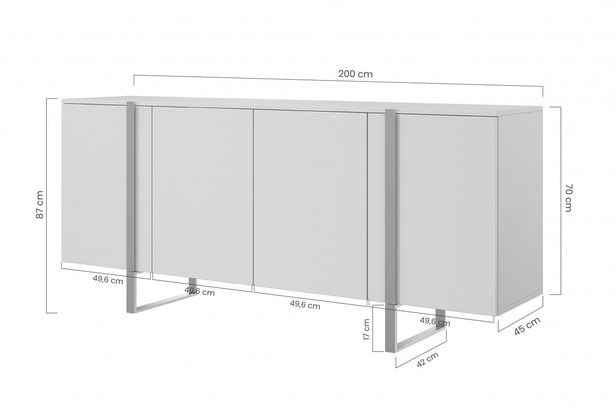 Komoda Verica 200 cm - dub biskvit / černé nohy