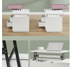 Konferenční stůl AKF-E1021 WT nabízí praktické řešení pro moderní obývací prostory díky své rozkládací funkci a úložnému prostoru. Deska stolu je vyrobena z MDF s matnou bílou povrchovou úpravou v dekoru dřeva, která zajišťuje odolnost proti poškrábání a snadnou údržbu. Stůl disponuje dvěma výklopnými deskami, pod kterými se nachází prostorné úložné přihrádky vhodné pro uložení drobných předmětů či časopisů. Konstrukce je stabilní a pevná, umožňuje nastavení výšky v rozmezí 48,5 až 62 cm, což přispívá k ergonomickému využití. Rozměry 100x50 cm poskytují dostatek pracovní nebo odkládací plochy, zatímco kompaktní design usnadňuje začlenění do různých interiérů.