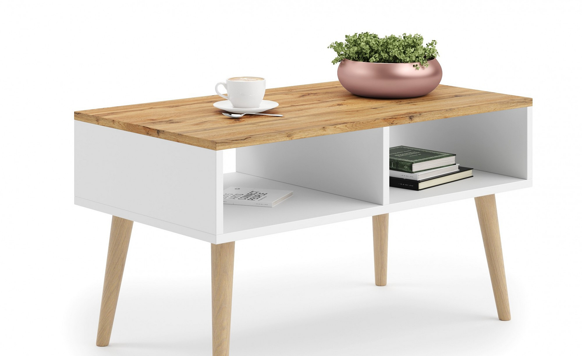 Konferenční stolek z kolekce SANA ve skandinávském stylu se hodí jak do moderních obývacích pokojů, tak i do menších místností. PosiADA dodatečnou poličku na předměty denní potřeby. Je to ideální místo k odpočinku u kávy.
