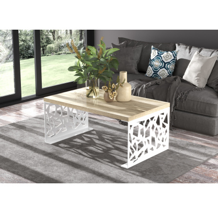 Konferenční stolek SEMARA 100x60 Bílý+Sonoma