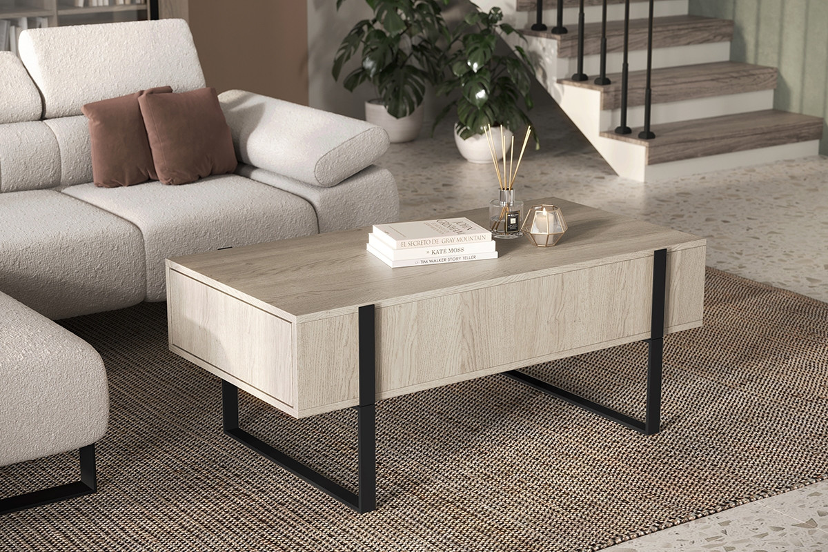 Konferenční stolek Verica - dub biscuit / černé nohy