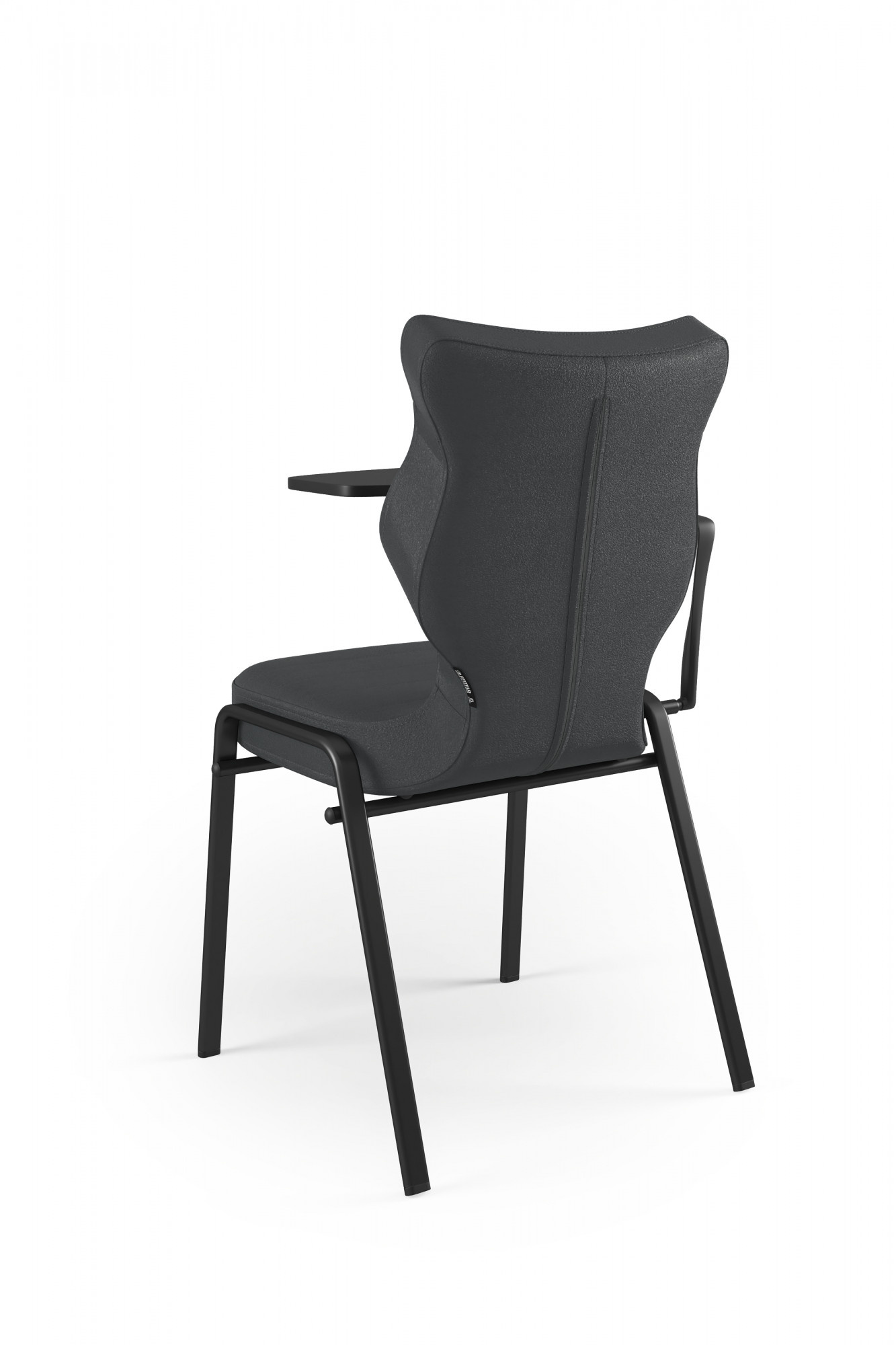 Sedák: Ergonomický sedák z plastu Podstavec: Plochý oválný profil 30x15x1,5 cm z oceli Barevné provedení: černá Stůl: Výklopný stůl z plastu Barevné provedení: černá Nohy: Protiskluzové nohy z plastu Barevné provedení: černá