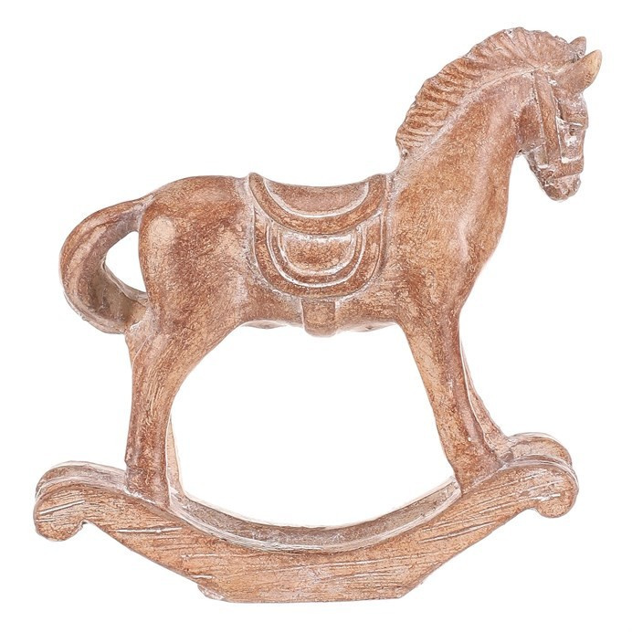 Koník houpací - 10 cm, polyresin, imitace dřeva