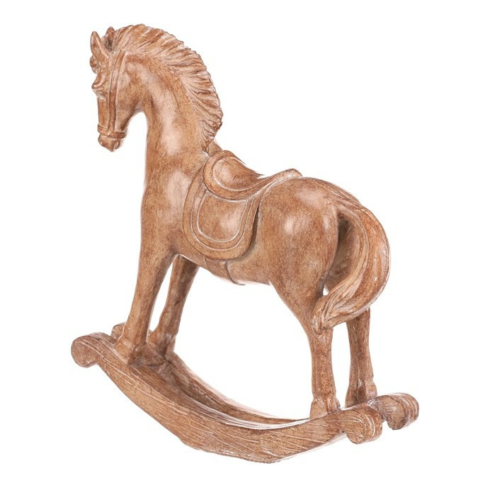 Koník houpací - 15 cm, polyresin, imitace dřeva