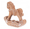 Perníkový koník z polyresinu v hnědém odstínu s bílým zdobením je kouzelnou vánoční ozdobou. Skvěle se hodí na poličku, stůl nebo jiná viditelná místa, kde přinese do vašeho interiéru vánoční pohodu a kouzlo tradic.