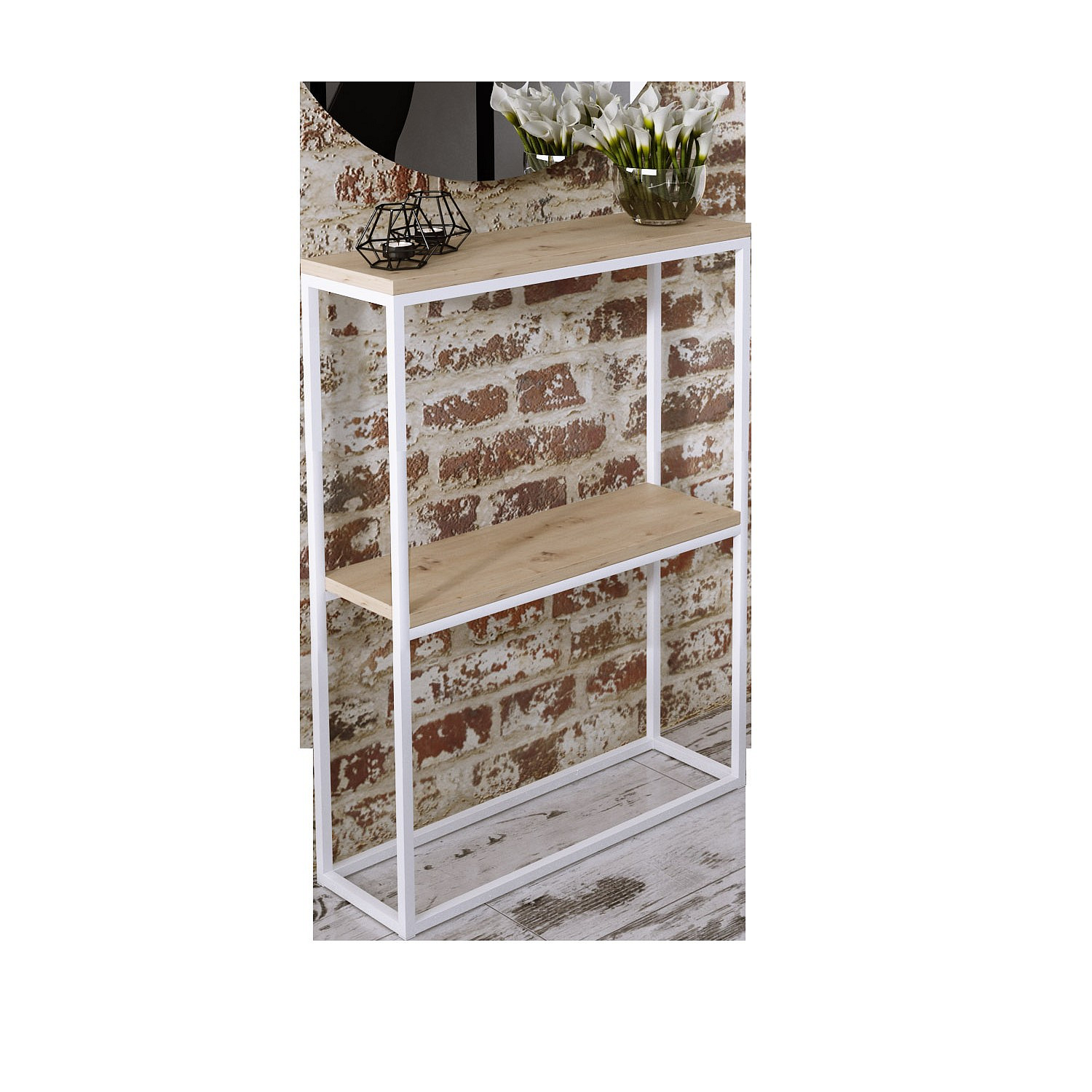 Stylová a moderní konzole MASON do předsíně. Široká deska nabízí spoustu místa pro vystavení dekorací nebo suvenýrů. Díky svému stylovému provedení dodává konzole interiérům industriální charakter. Nábytek je dodáván vcelku a nevyžaduje montáž.