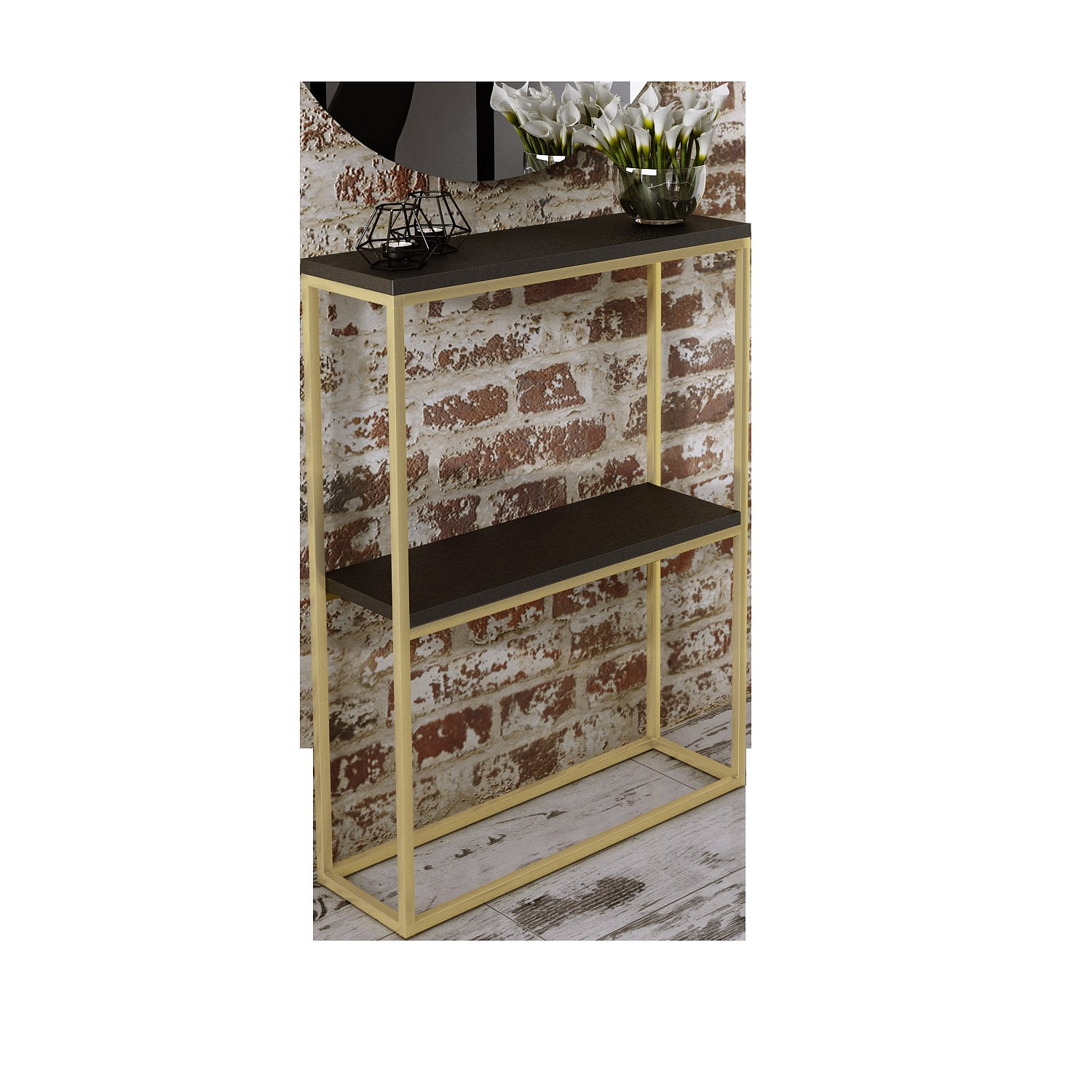 Stylová a moderní konzole MASON do předsíně. Široká deska nabízí spoustu místa pro vystavení dekorací nebo suvenýrů. Díky svému stylovému provedení dodává konzole interiérům industriální charakter. Nábytek je dodáván vcelku a nevyžaduje montáž.