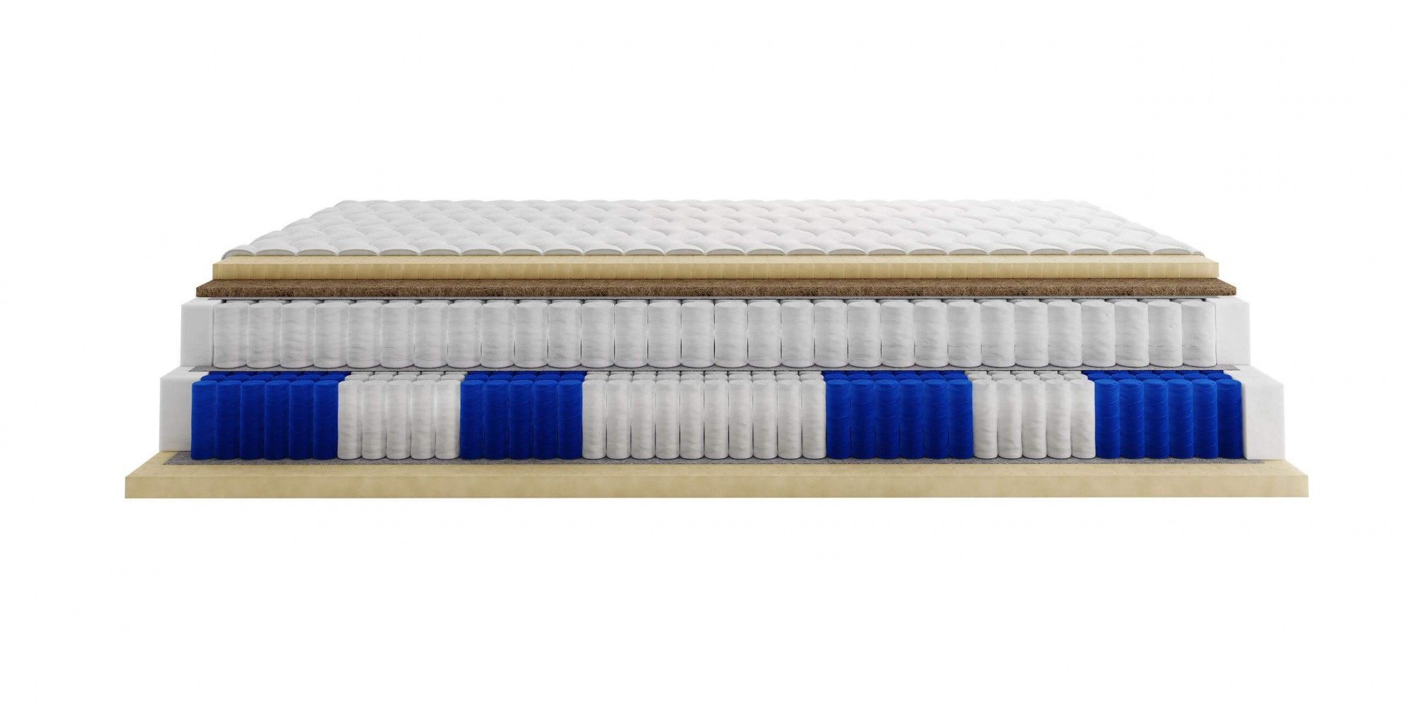 Kontinentální matrace MINT se skládá z několika vrstev, které se vzájemně doplňují a vytvářejí optimální podmínky pro spánek. Základem je robustní pružinové jádro, které poskytuje pevnou oporu a rovnoměrně rozkládá váhu těla. Na pružinovém jádru je umístěna vrstva kvalitní pěny, která se přizpůsobí vašim tělesným křivkám a zajistí maximální pohodlí. Vrchní vrstva matrace je tvořena topperem, který zvyšuje komfort a prodlužuje životnost matrace.