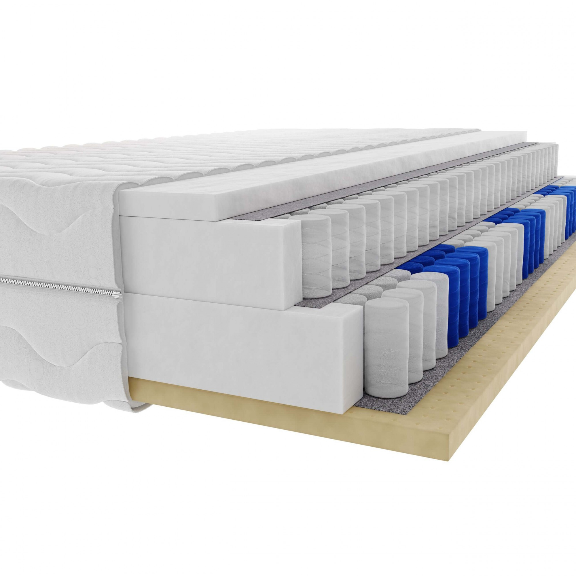 - Střední matrace: Jádro matrace, které poskytuje hlavní oporu a pohodlí. Vysoce kvalitní pružiny nebo pěna se postarají o správné rozložení tlaku a minimalizují přenos pohybu, takže nebudete rušeni pohyby partnera.