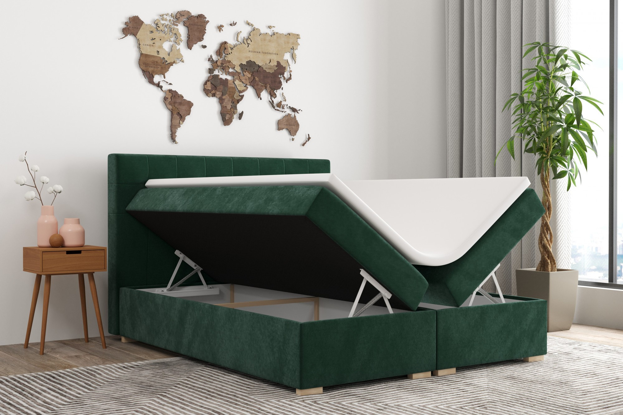 Kontinentální postel CARLO je navržena tak, aby poskytovala maximální komfort a oporu pro vaše tělo. Její unikátní konstrukce se skládá z několika vrstev, které se vzájemně doplňují a zajišťují optimální rozložení váhy a prodyšnost. Základem je pevný a stabilní rám, který zaručuje dlouhou životnost postele. Na něm je umístěna pružinová matrace, která se dokonale přizpůsobí vašim tělesným křivkám a poskytuje vynikající oporu páteři.