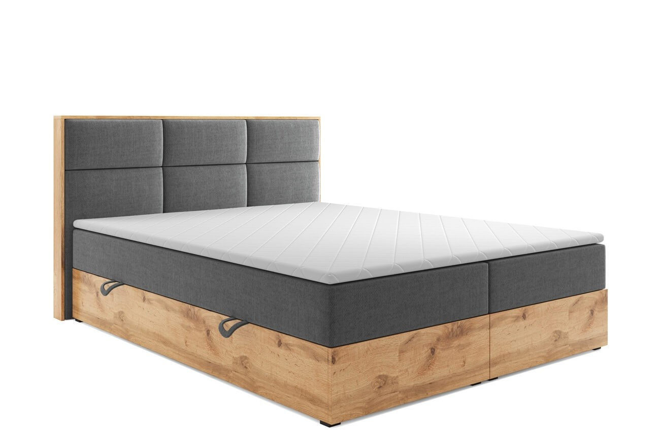 - Konstrukce: Rám z masivního dřeva, boxspring, hlavní matrace, topper