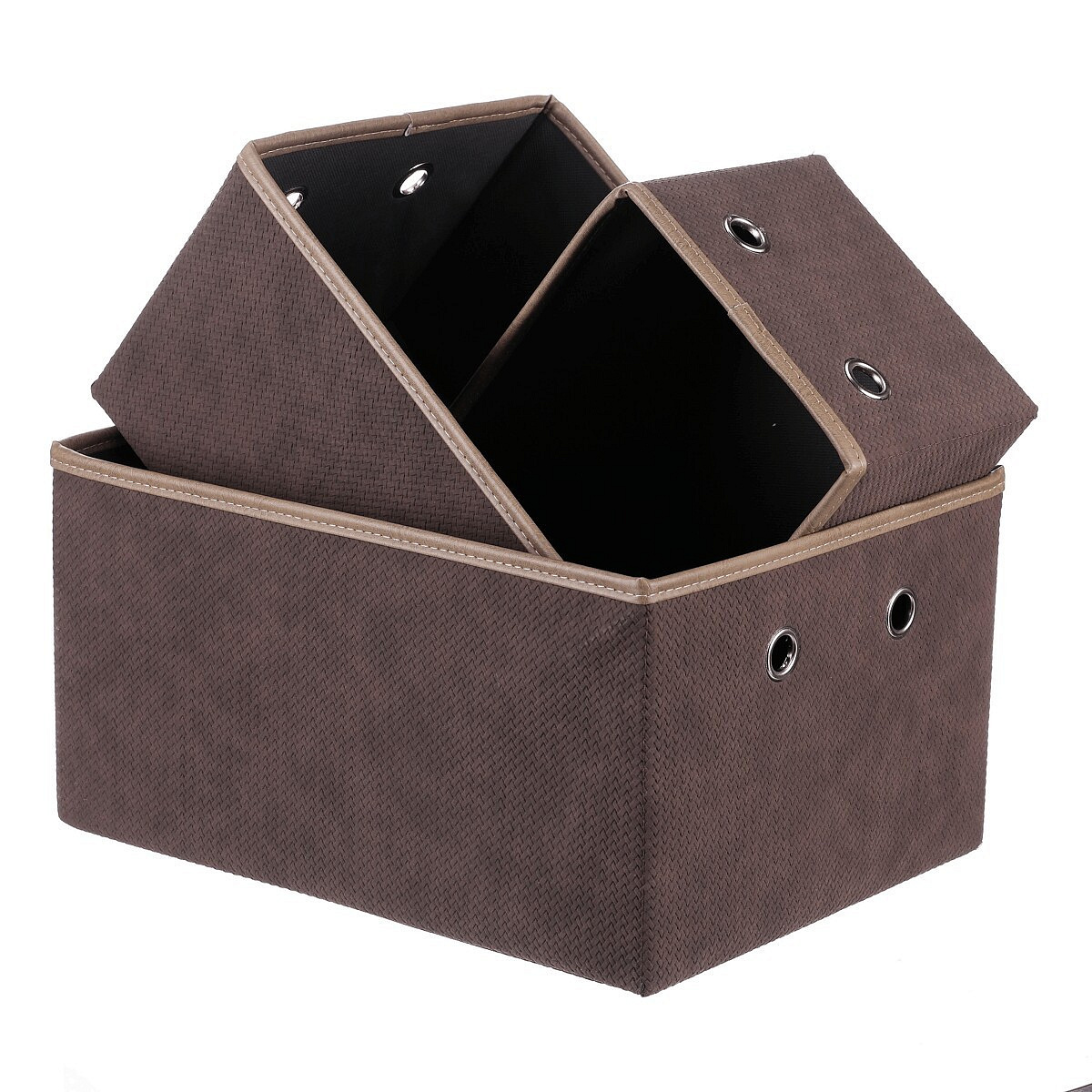 Tato sada rozkládacích látkových košů o třech různých velikostí v hnědých barvách, je skvělým pomocníkem pro uskladnění prádla nebo dalších předmětů k uložení. Díky otvorům po stranách můžete snadno navázat poutka pro lepší manipulaci a přenášení. Elegantní design a praktičnost se spojily v jednom produktu, který vám pomůže udržet pořádek a hezké prostředí ve vaší domácnosti.