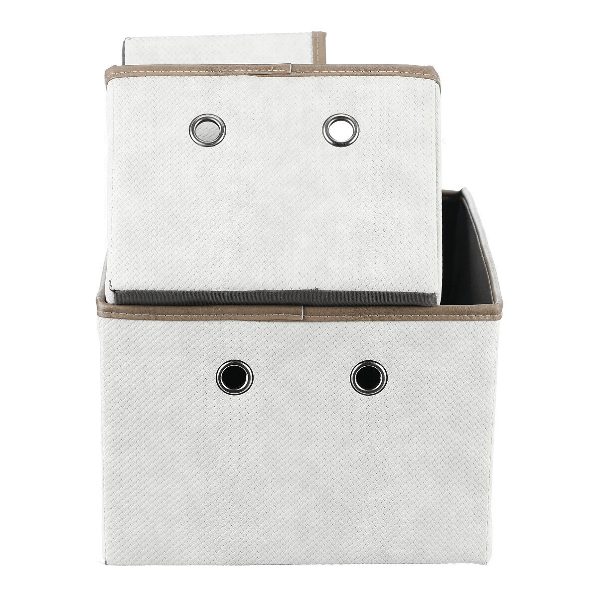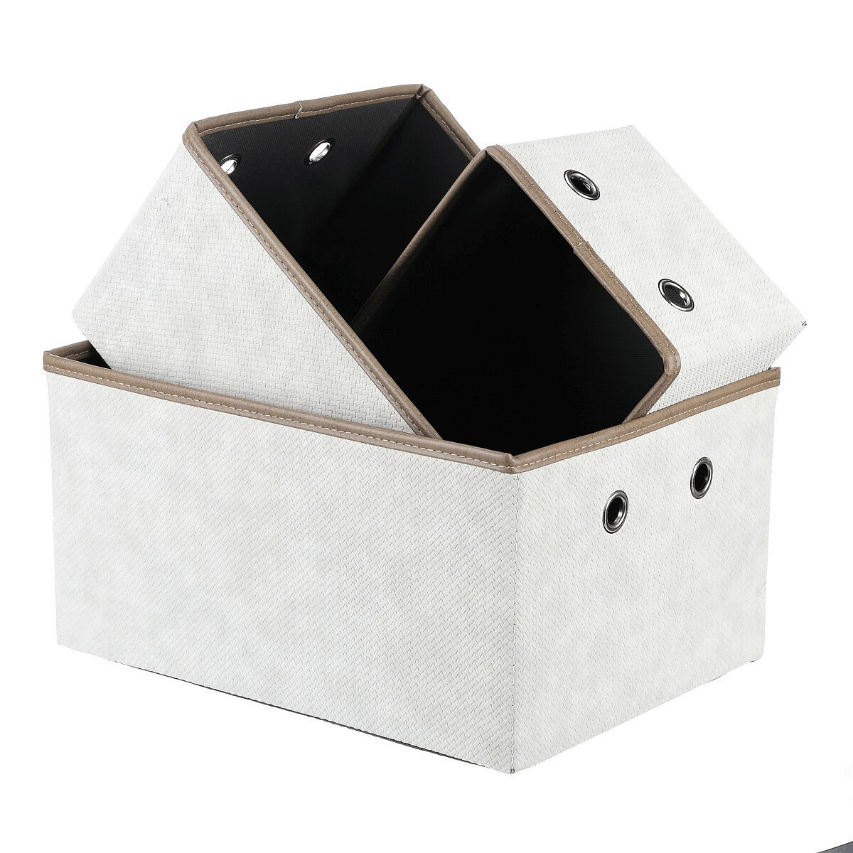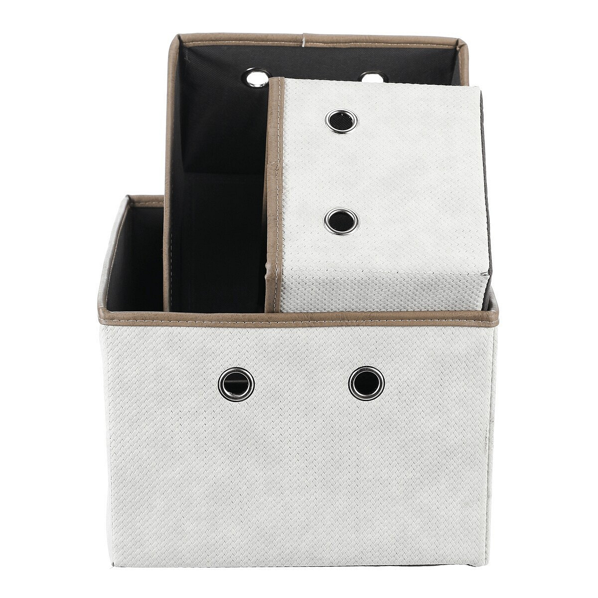 Sada rozkládacích látkových košů o třech různých velikostech v krémových barvách, je skvělým pomocníkem pro uskladnění prádla nebo dalších předmětů k uložení. Díky otvorům po stranách můžete snadno navázat poutka pro lepší manipulaci a přenášení. Elegantní design a praktičnost se spojily v jednom produktu, který vám pomůže udržet pořádek a hezké prostředí ve vaší domácnosti.