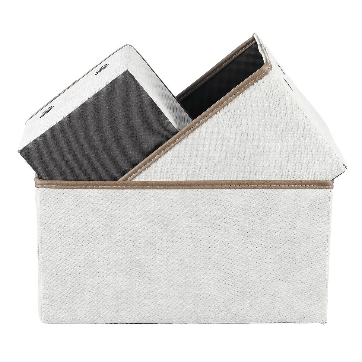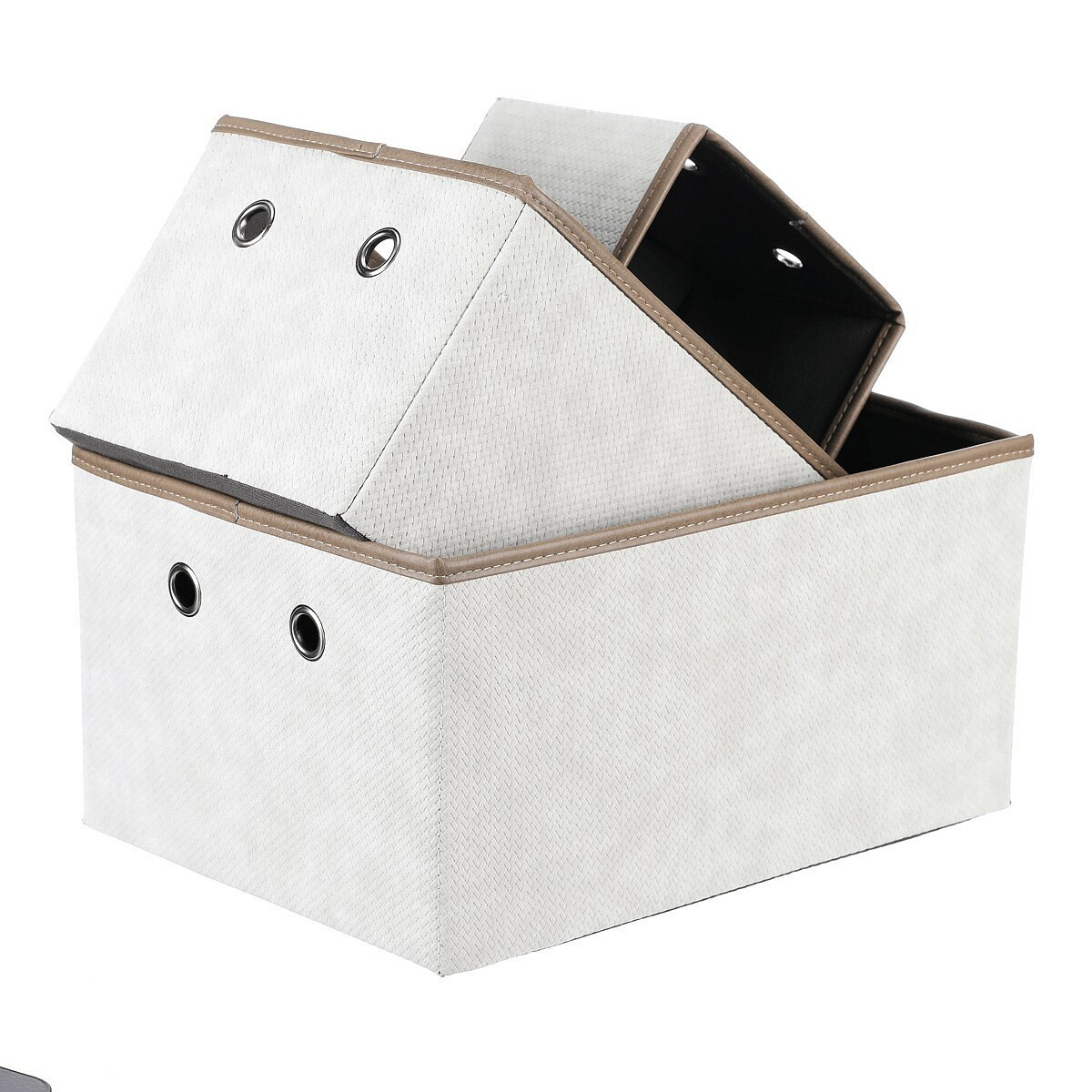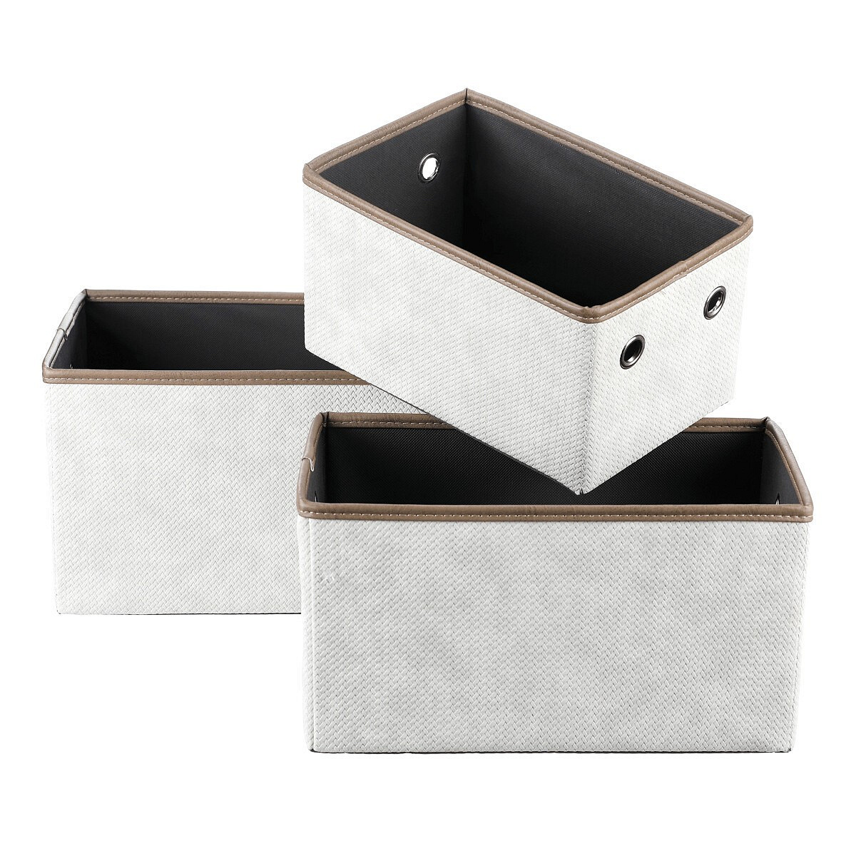 Sada rozkládacích látkových košů o třech různých velikostech v krémových barvách, je skvělým pomocníkem pro uskladnění prádla nebo dalších předmětů k uložení. Díky otvorům po stranách můžete snadno navázat poutka pro lepší manipulaci a přenášení. Elegantní design a praktičnost se spojily v jednom produktu, který vám pomůže udržet pořádek a hezké prostředí ve vaší domácnosti.