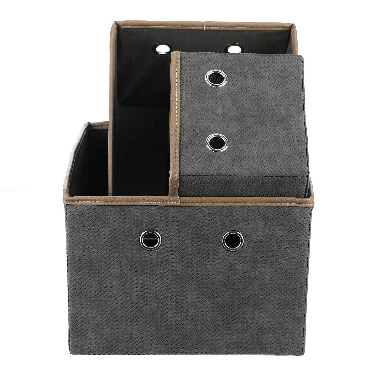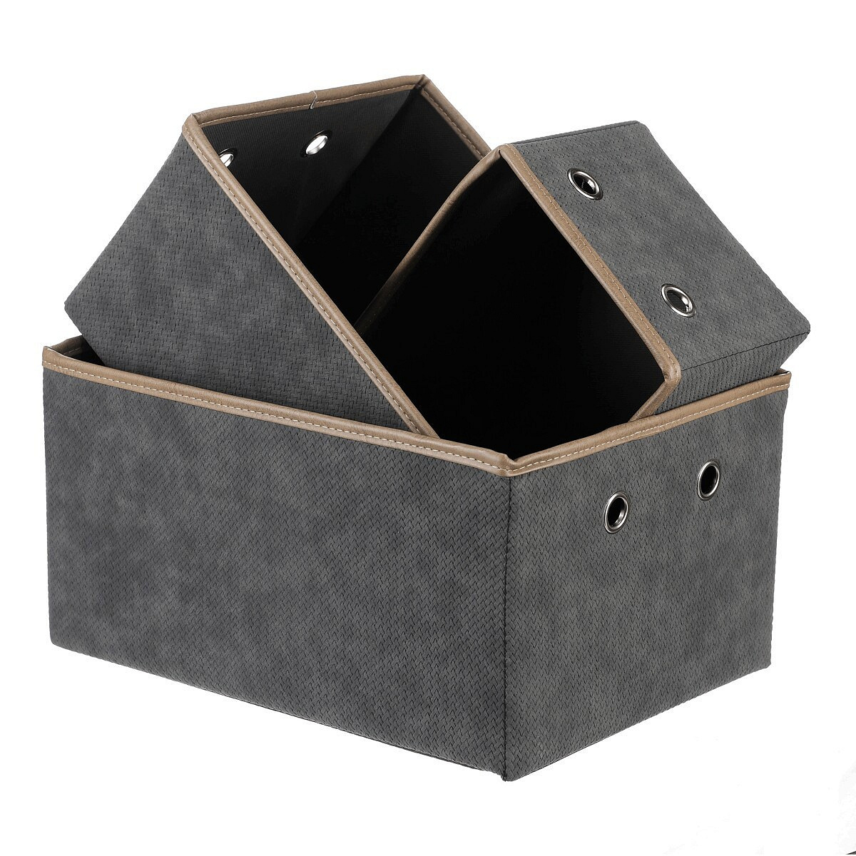 Sada rozkládacích látkových košů o třech různých velikostech v šedých barvách, je skvělým pomocníkem pro uskladnění prádla nebo dalších předmětů k uložení. Díky otvorům po stranách můžete snadno navázat poutka pro lepší manipulaci a přenášení. Elegantní design a praktičnost se spojily v jednom produktu, který vám pomůže udržet pořádek a hezké prostředí ve vaší domácnosti.