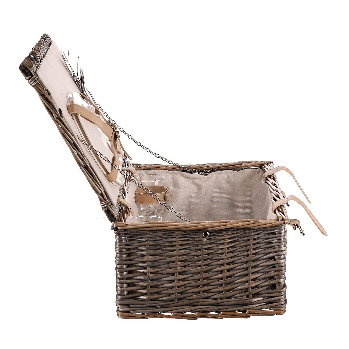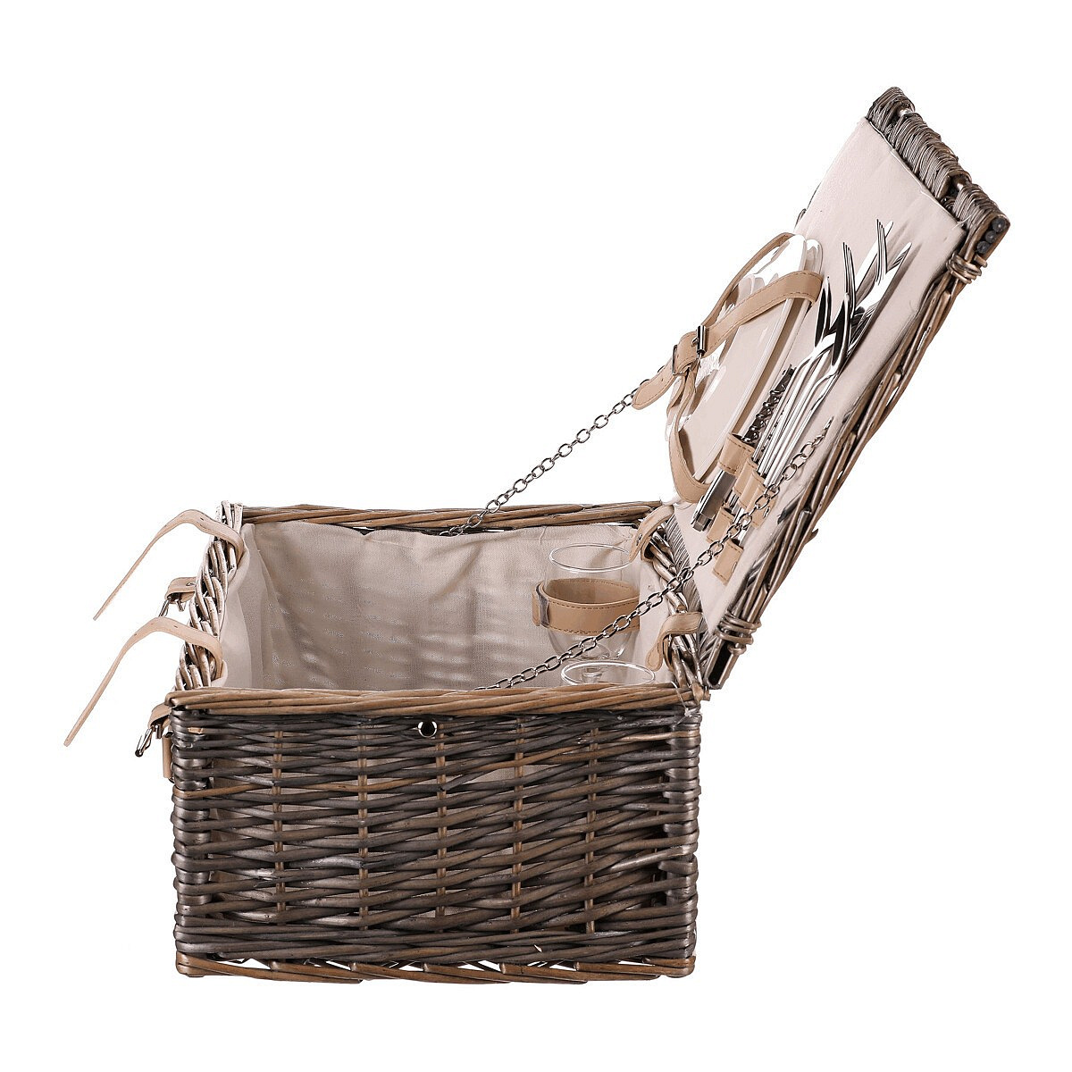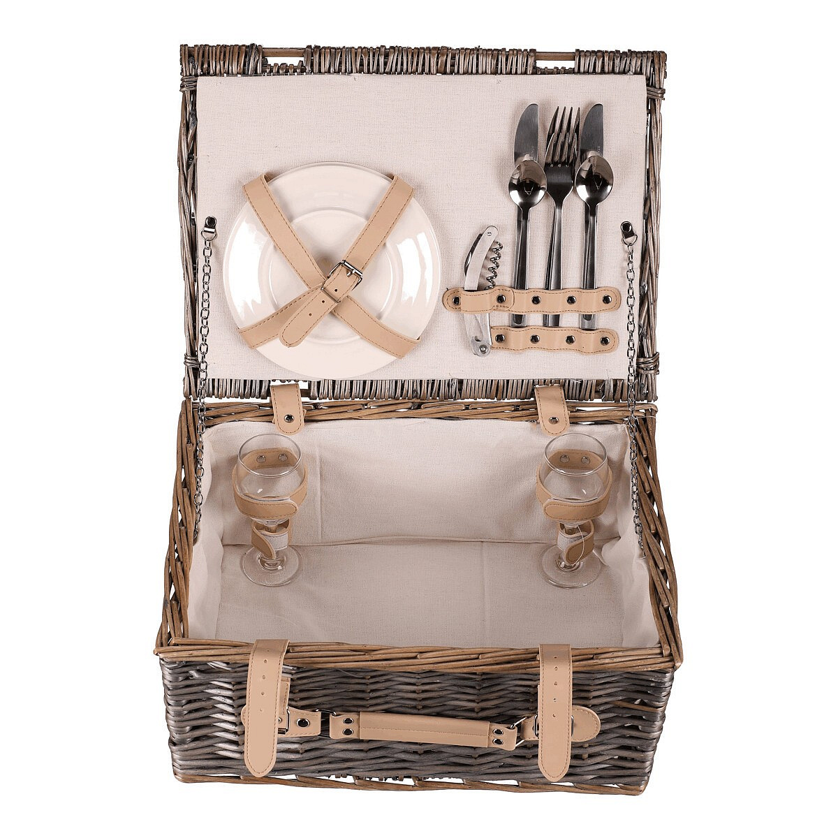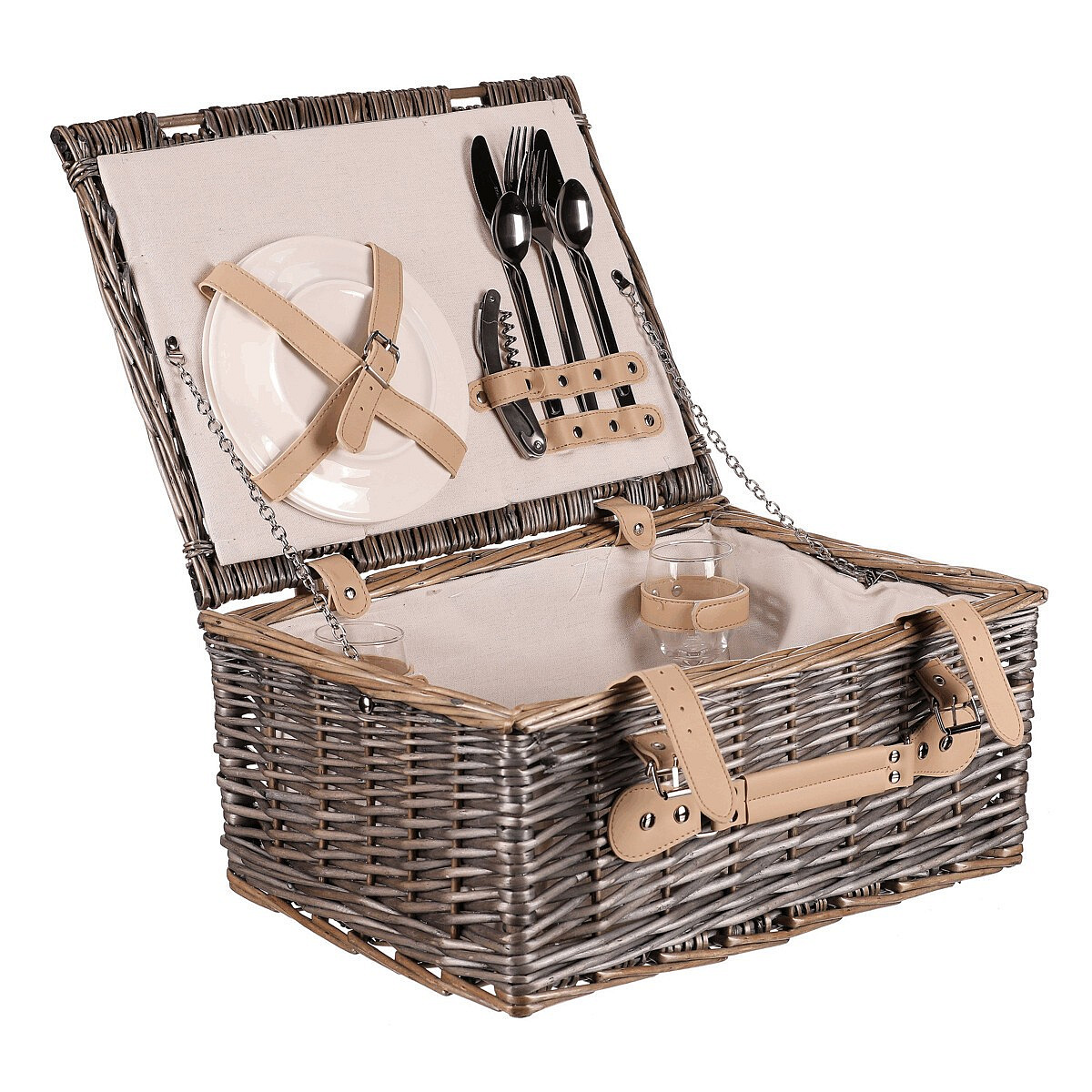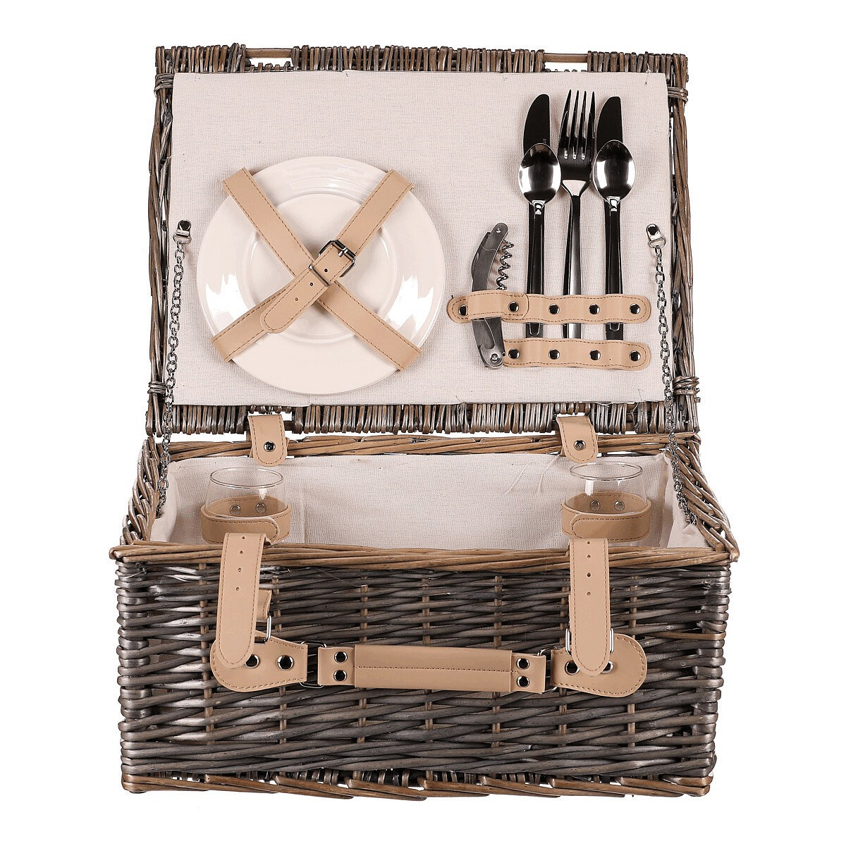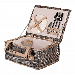 Koš piknikový - s vybavením pro 2 osoby, proutěný, barva šedá
