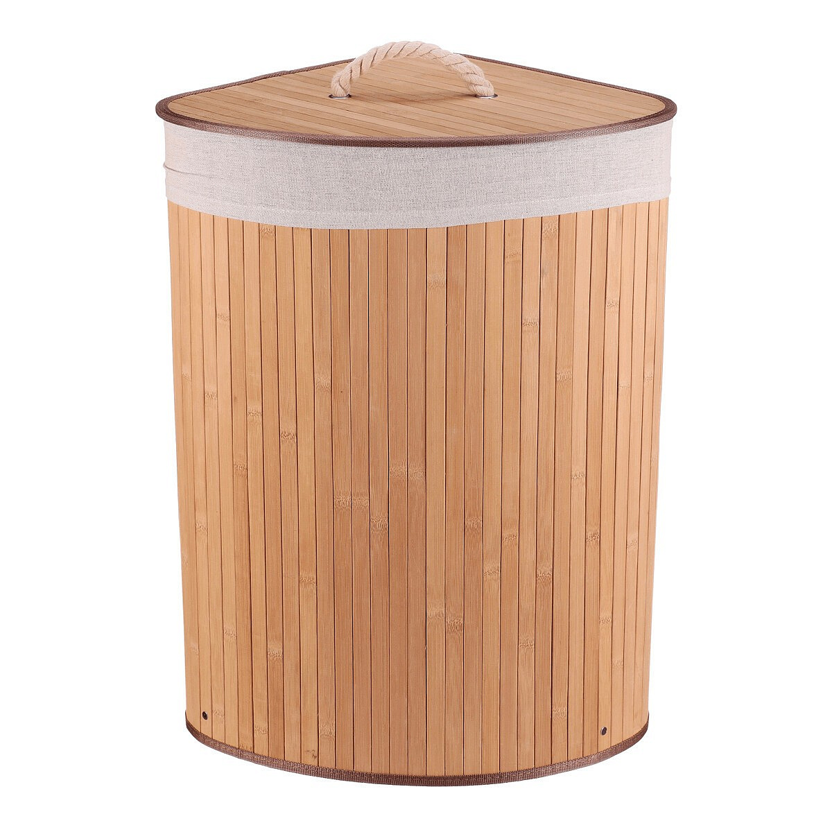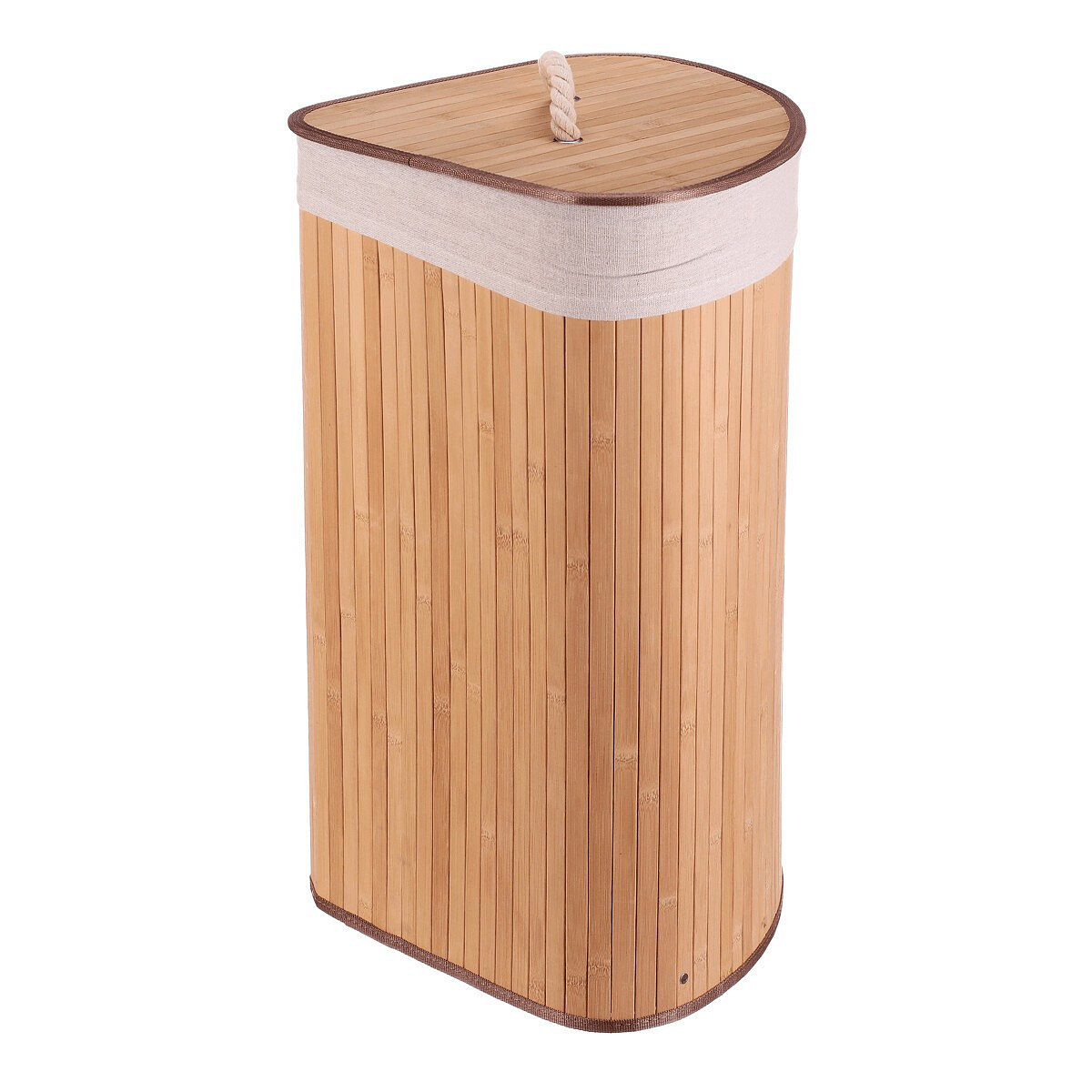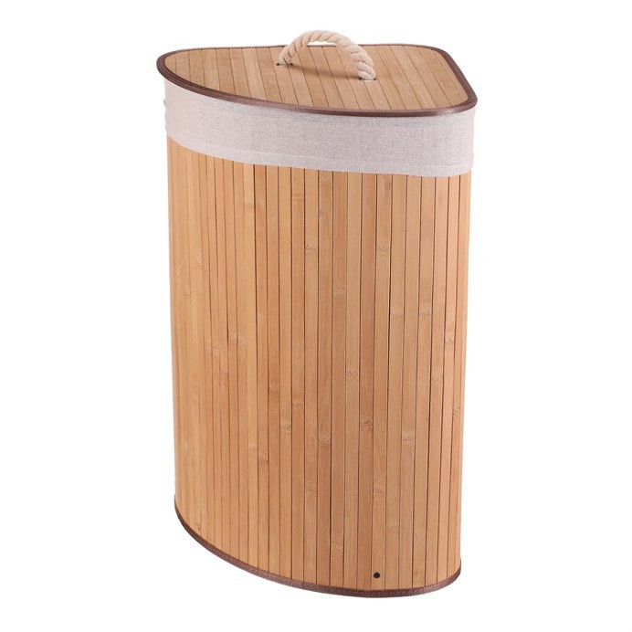 Koš prádelní - bambusový, rohový s víkem, přírodní