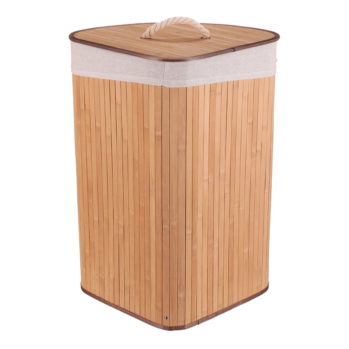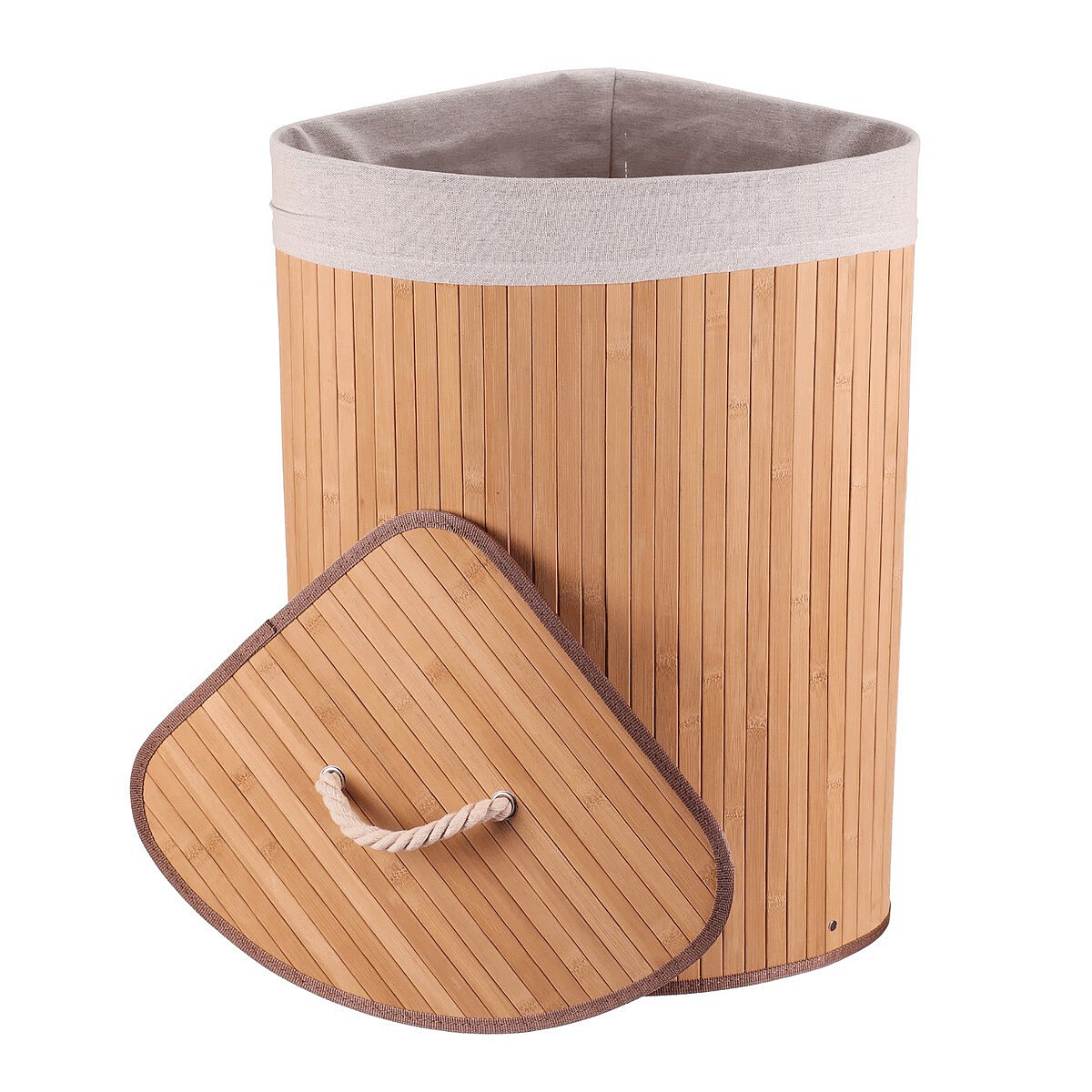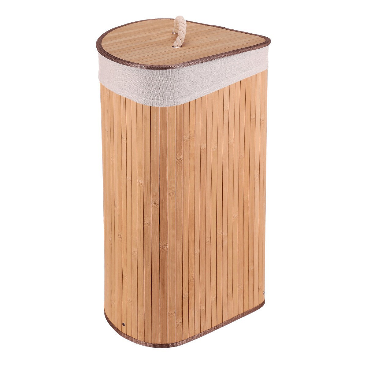 Koš prádelní - bambusový, rohový s víkem, přírodní