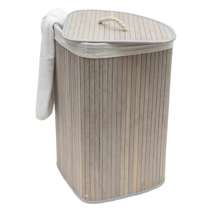 Koš prádelní - bambusový, rohový s víkem, šedý