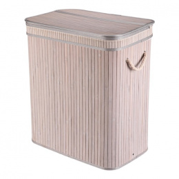 Prádelní koš z bambusu v šedém odstínu nabízí praktické a estetické řešení pro ukládání prádla. Jeho pevné bambusové lamely jsou uspořádány do vertikálního vzoru, který dodává koši přirozený vzhled a zároveň zajišťuje dostatečnou pevnost. Koš je vybaven víkem, které pomáhá udržet obsah skrytý a chráněný před prachem. Pro snadnou manipulaci slouží pevné provedení s dvěma bočními úchyty z pevného lana. Díky svému rozměru a materiálu je vhodný do koupelen i ložnic, kde se snadno udržuje a přispívá k uklizenému prostoru.