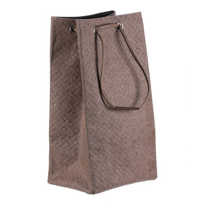 Látkový koš na prádlo ve tvaru praktického vaku zaujme moderním vzhledem i funkčností. Má jemnou hnědou barvu, koženkový povrch a horní část se snadno uzavírá pomocí stahovací šňůry. Díky lehké konstrukci se s ním dobře manipuluje, je dobře skladovatelný a v interiéru působí i jako stylový doplněk, není tak pouze úložným prostorem.