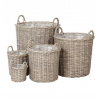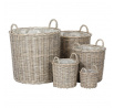 Proutěný koš s kruhovým půdorysem v přírodní našedivělé barvě představuje skvělou variantu obalu pro vaše květiny. Nabízíme vám je v sadě pěti různých velikostí, tak abyste mohli vybrat tu správnou míru pro vaší vybranou rostlinu. Materiál z proutí dodává do interiéru příjemný a rustikální vzhled, který navodí útulnější a atmosféru. Tento koš je především estetickým doplňkem, protože je celý pouze a jen z proutí. Proto je důležité, aby květiny v koši byly umístěny již ve svém obalu a nehrozilo prosakování vody.