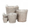 Proutěný koš s kruhovým půdorysem v přírodní našedivělé barvě představuje skvělou variantu obalu pro vaše květiny. Nabízíme vám je v sadě pěti různých velikostí, tak abyste mohli vybrat tu správnou míru pro vaší vybranou rostlinu. Materiál z proutí dodává do interiéru příjemný a rustikální vzhled, který navodí útulnější a atmosféru. Tento koš se dvěma uchy po stranách pro snadnější přemisťování, je navíc vybaven igelitovou vložkou, která zabraňuje prosakování vody, a tím chrání obal samotný včetně jeho bezprostředního okolí.