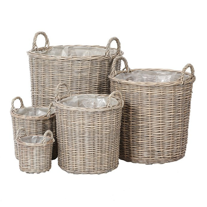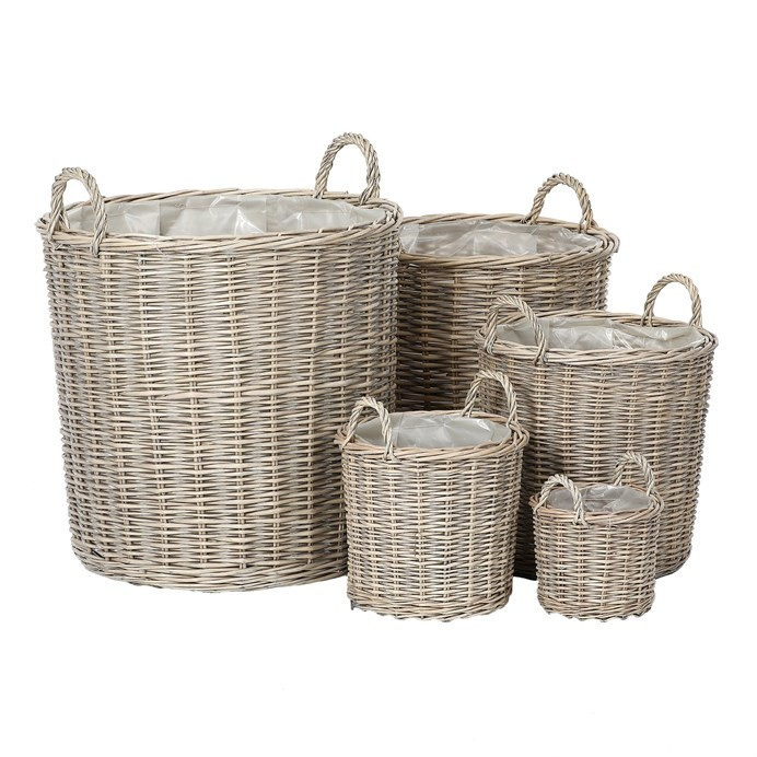 Proutěný koš s kruhovým půdorysem v přírodní našedivělé barvě představuje skvělou variantu obalu pro vaše květiny. Nabízíme vám je v sadě pěti různých velikostí, tak abyste mohli vybrat tu správnou míru pro vaší vybranou rostlinu. Materiál z proutí dodává do interiéru příjemný a rustikální vzhled, který navodí útulnější a atmosféru. Tento koš je především estetickým doplňkem, protože je celý pouze a jen z proutí. Proto je důležité, aby květiny v koši byly umístěny již ve svém obalu a nehrozilo prosakování vody.