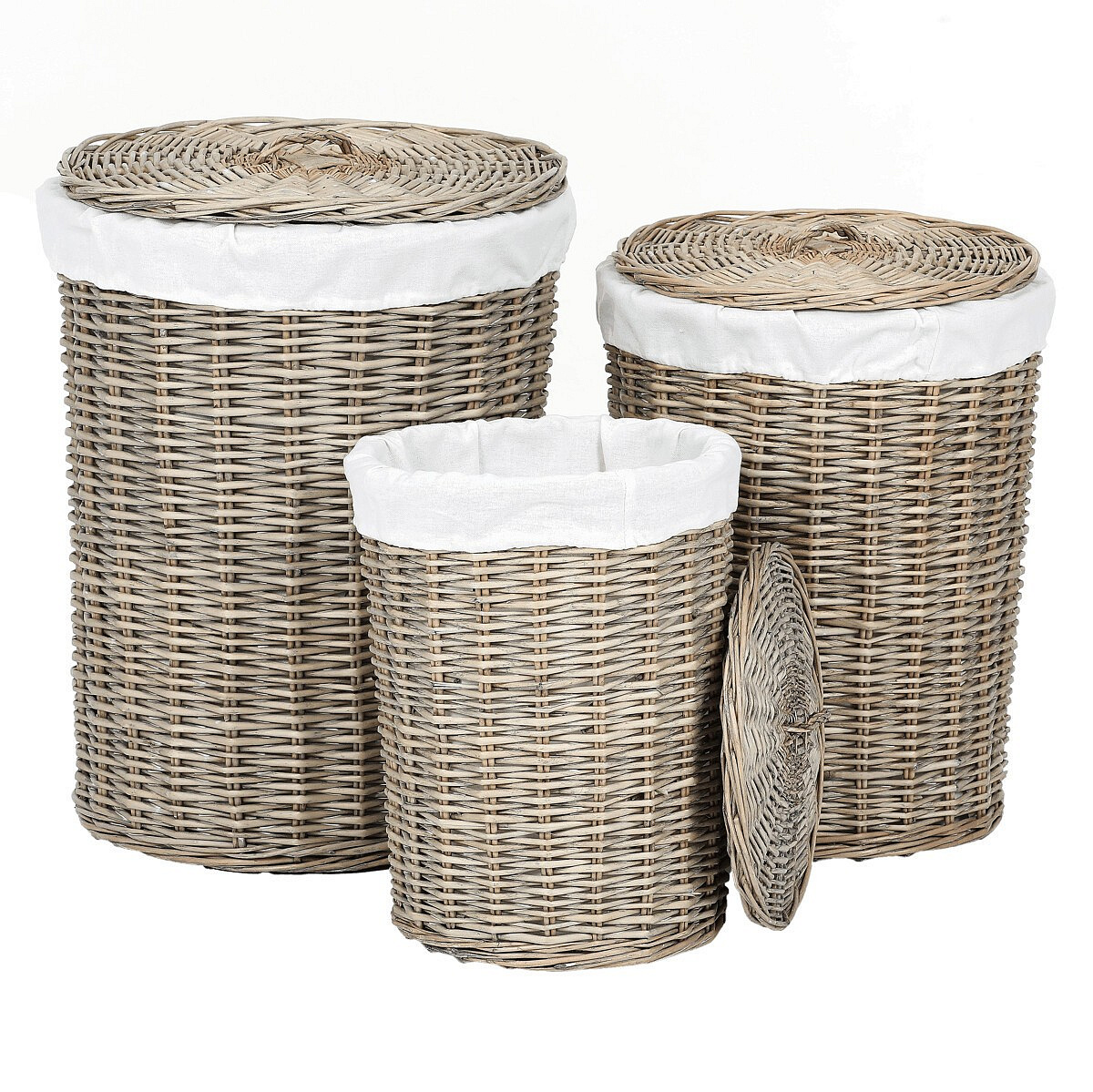 Koš proutěný - prádelní, s víkem, šedý, cena za sadu 3 ks