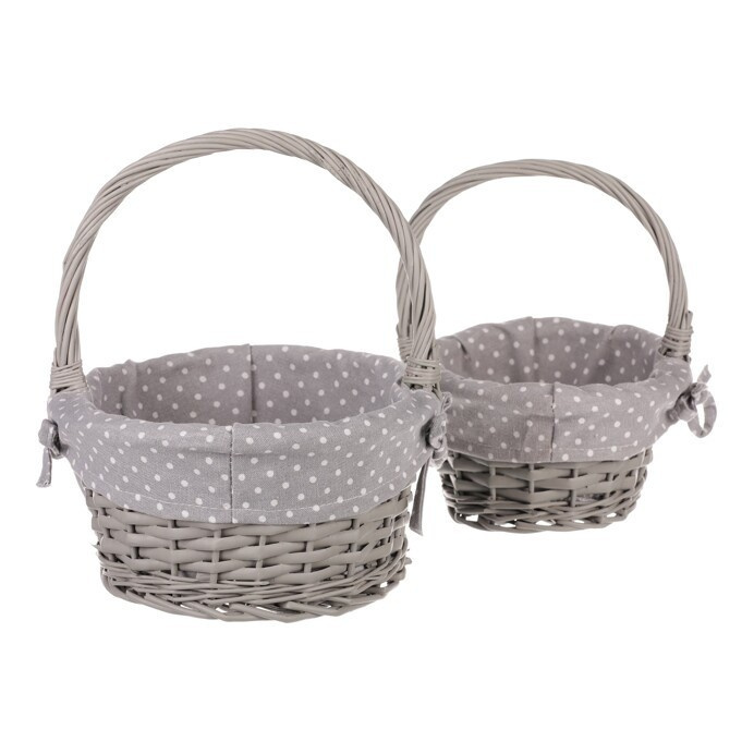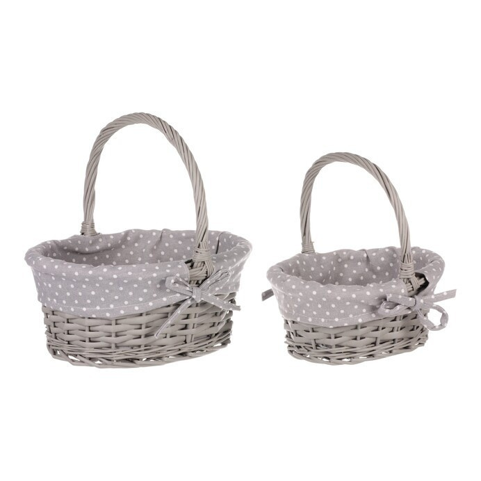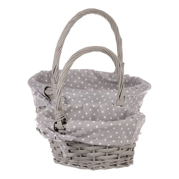 Koš proutěný - s uchem, šedý, s látkou, cena za sadu 2 ks