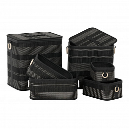 Koš regálový a prádelní - bambus, černý, cena za sadu 6 ks