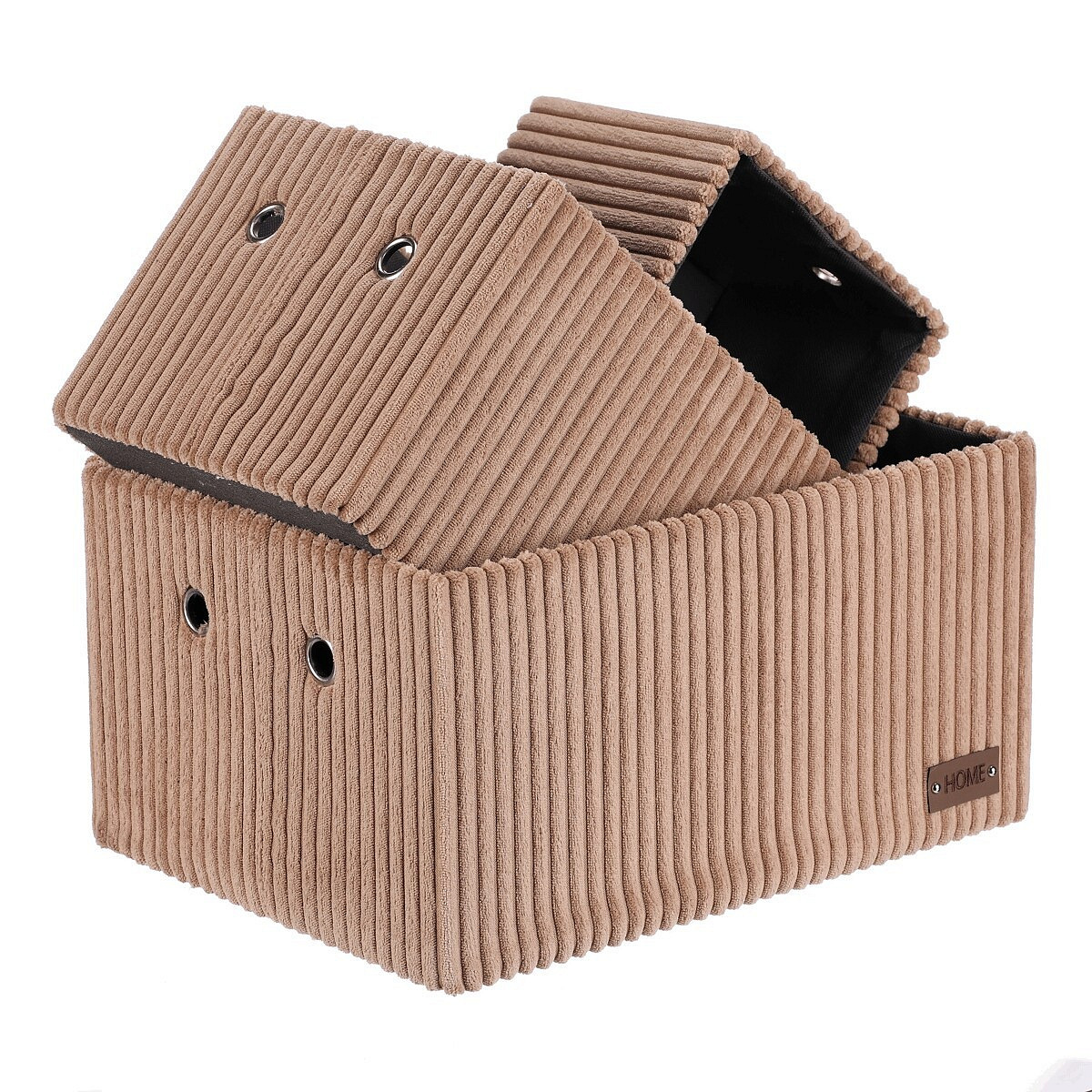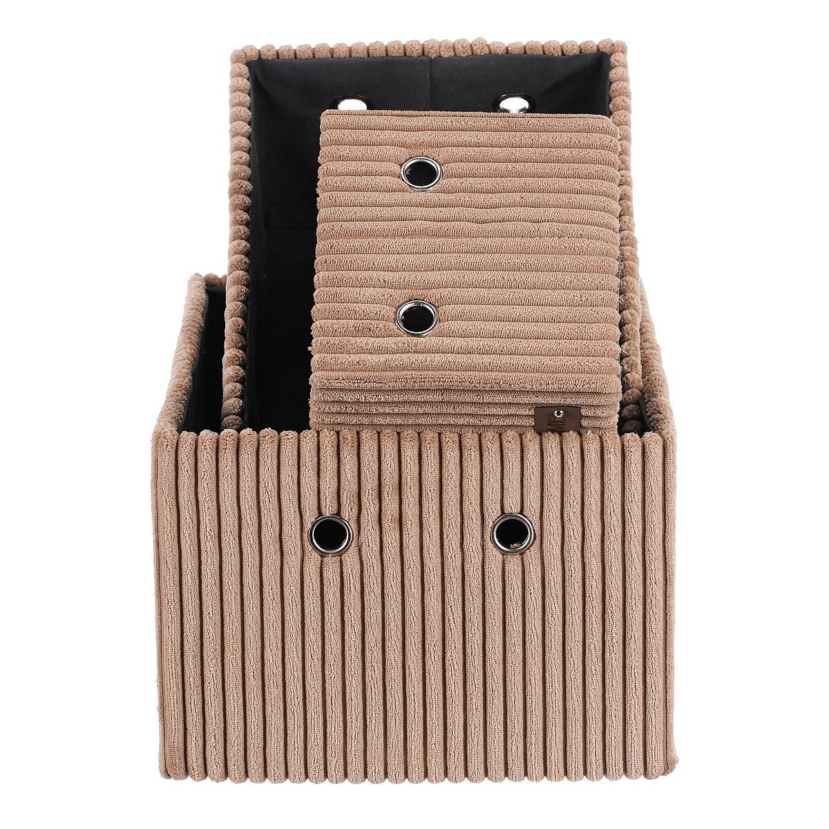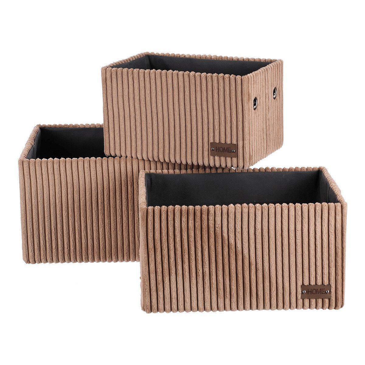 Koš regálový - manšestrový potah, hnědý, cena za sadu 3 ks