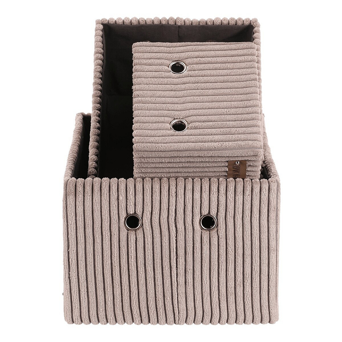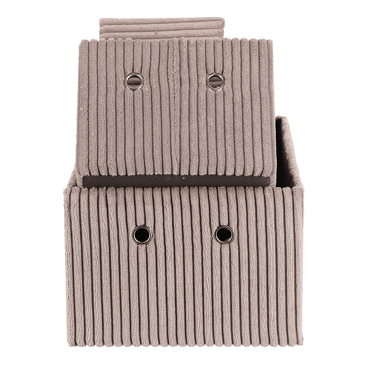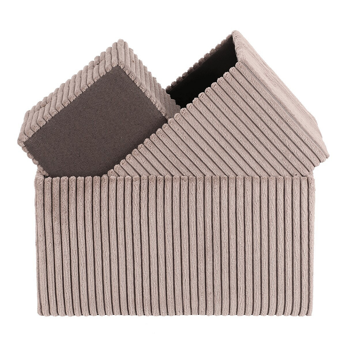 Sada tří látkových regálových košů o třech různých velikostech s manšestrovým potahem přinese do vaší domácnosti pořádek i styl. Obdélníkový tvar perfektně sedne do polic, povrch je příjemný na dotek a elegantní vzhled skvěle ladí s moderním interiérem. Ideální pro uschování oblečení a nejrůznějších věcí a drobností, které chcete mít přehledně a úhledně uložené.