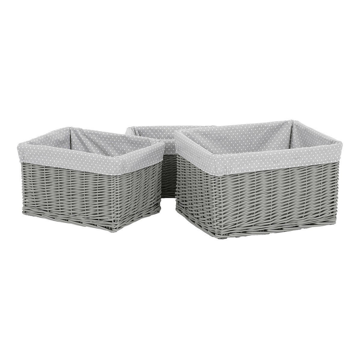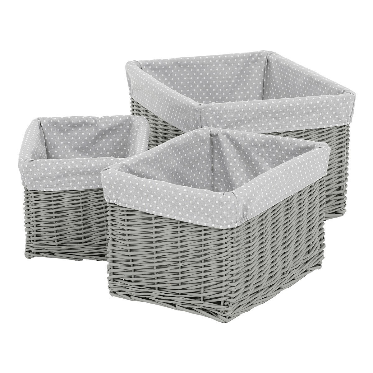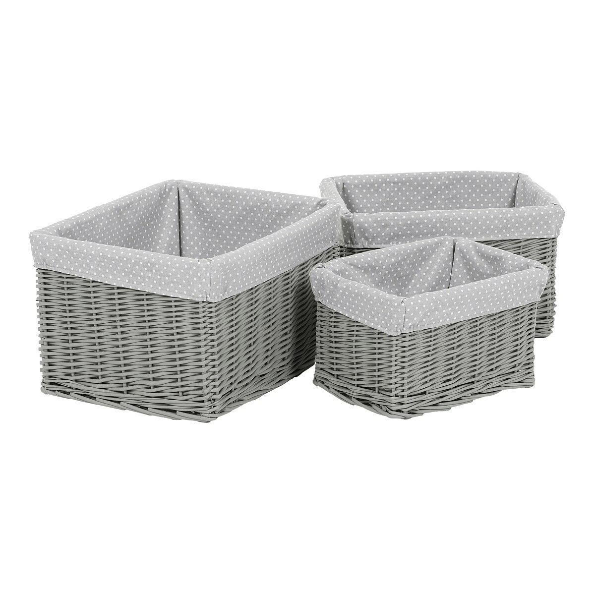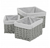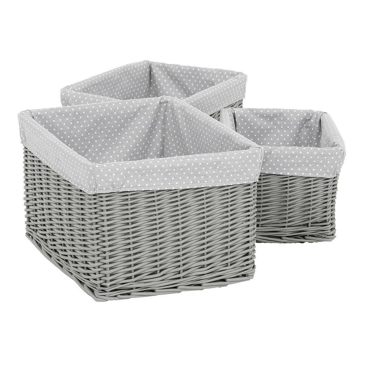 Koš regálový - proutěný, šedý s látkou, cena za sadu 3 ks
