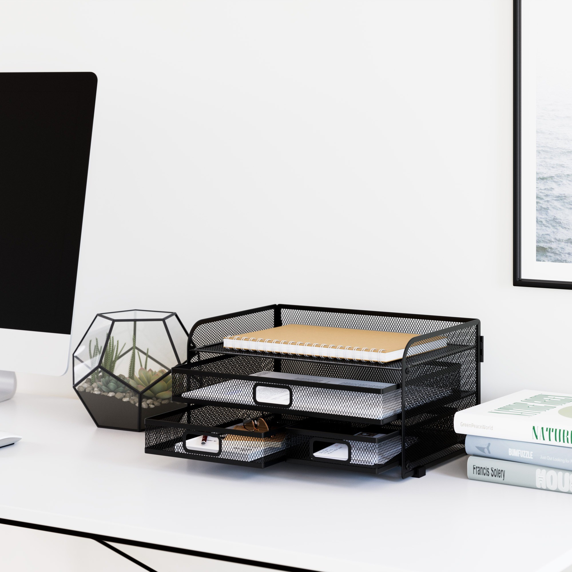 - Zlepšuje organizaci: Pomáhá udržet si pořádek na pracovním stole a zvyšuje produktivitu.