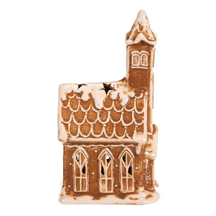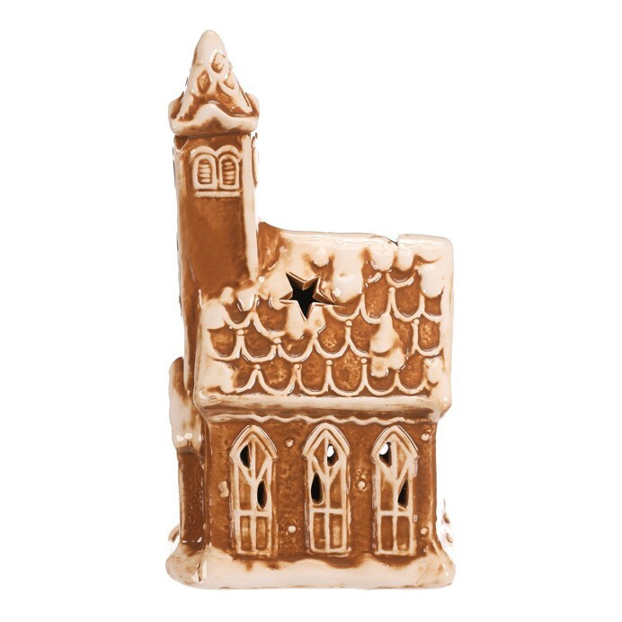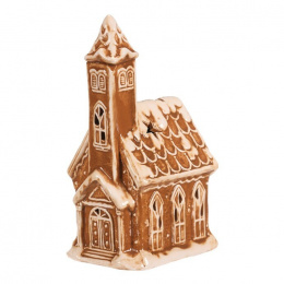Perníkový kostelík z keramiky s LED osvětlením bude ideální dekorací pro vánoční období. Vypadá, jako by byl skutečně upečen z perníku mistrem cukrářem a ozdoben sladkou bílou polevou. Po rozsvícení světla uvnitř, se vám naskytne úžasný pohled na pronikající paprsky světla srze všechna okénka. Zahalte tak svůj sváteční prostor snadno a rychle do skutečně pohádkové atmosféry, díky této úžasné perníkové ozdobě.