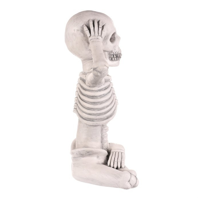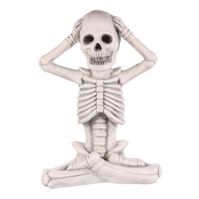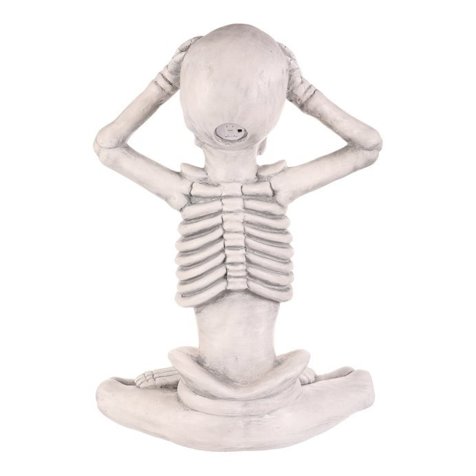 Tento kostlivec z magnesia je perfektní halloweenská dekorace, která zaujme na první pohled! Je v pozici tureckého sedu, drží se za hlavu, a díky LED osvětlení, se mu po rozsvícení rozzáří oči, jako by se chystal vás vyděsit. Nemusíte se ho ale bát, naopak, jeho výraz a póza z něj dělají spíš legračního společníka, který dodá vaší výzdobě tu správnou dávku tajemna i humoru.