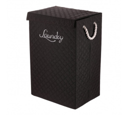 Vysoký látkový koš v černé barvě ve tvaru krabice s uchy z provázků a víkem, navíc potažený hebkou l